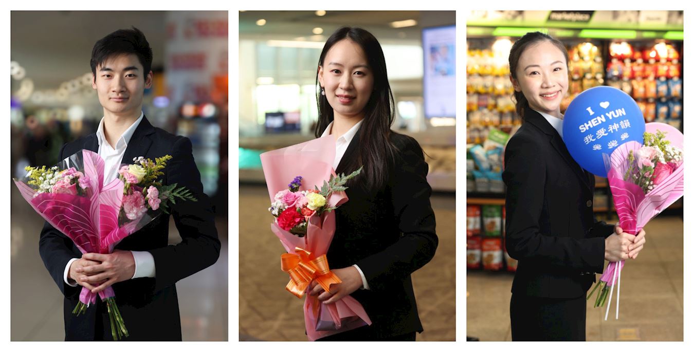 ![]() 图2:神韵艺术团艺术家在机场接受了采访。从左至右:领舞演员肖大卫、长笛演奏家黄子蓉、领舞演员范徽怡。(明慧网合成) |