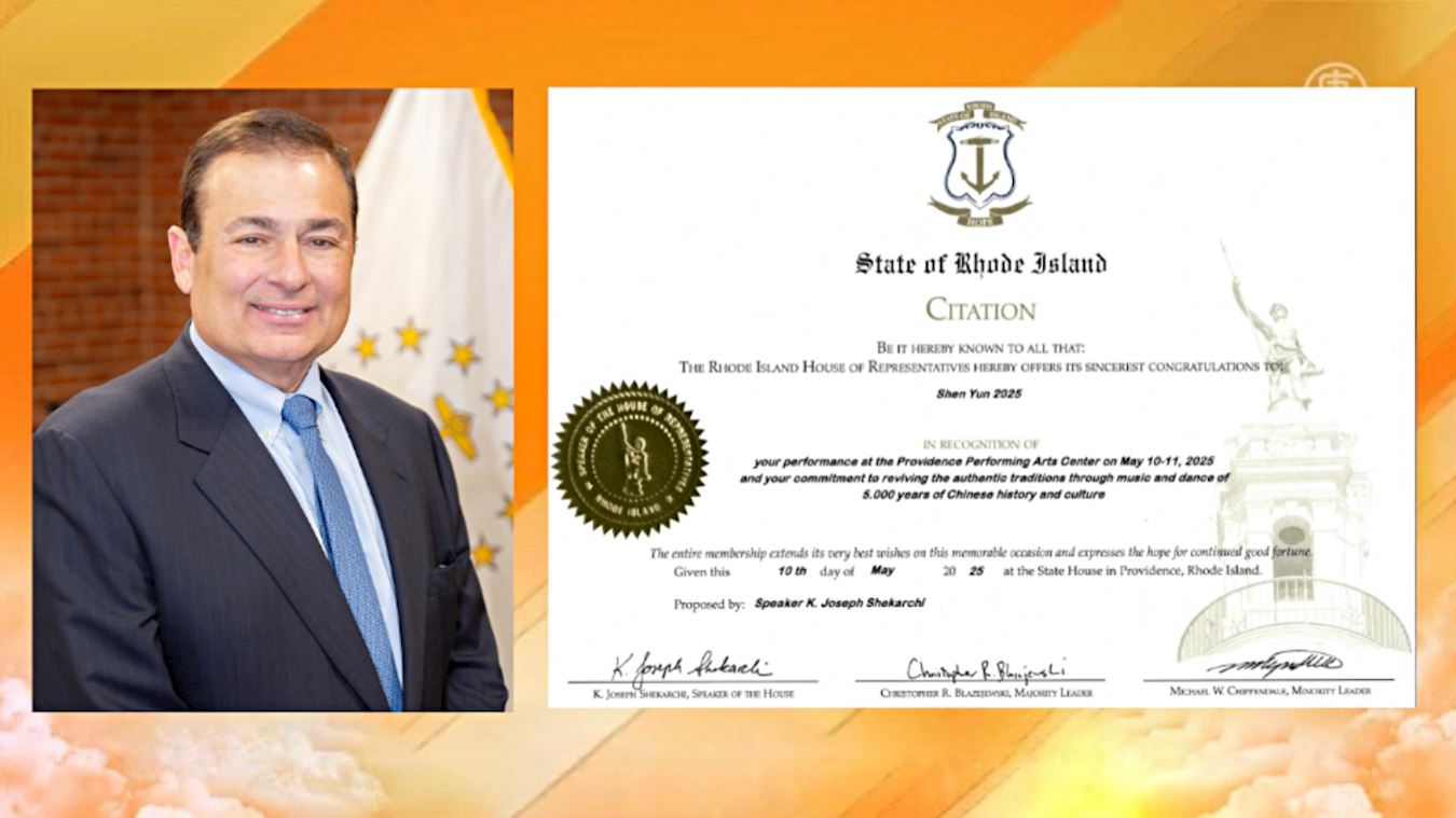 ![]() 图9:二零二五年五月十日至十一日,神韵巡回艺术团莅临美国罗德岛州,为普罗维登斯带来三场演出。演出前夕,由罗德岛州众议会议长谢卡奇(K.Joseph Shekarchi)提案,并由多位领袖联名签署,向神韵艺术团颁发褒奖。(由神韵主办方提供) |