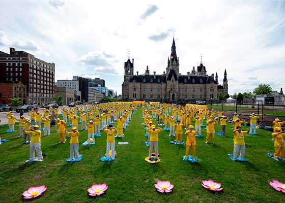 五月二十八日,来自加拿大东部的法轮功学员齐聚在加拿大首都渥太华的国会山庄前,共同庆祝法轮大法弘传世界33周年。