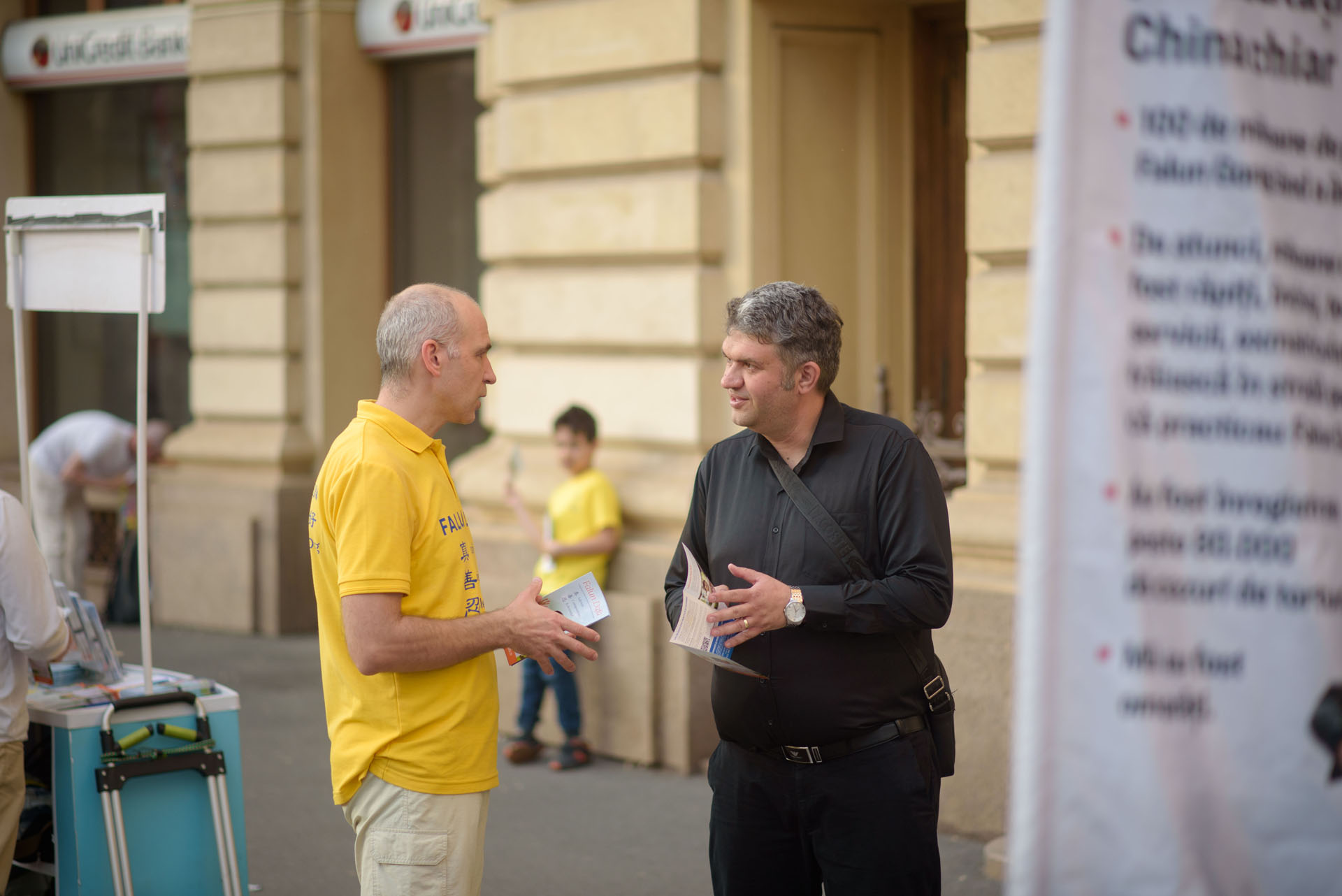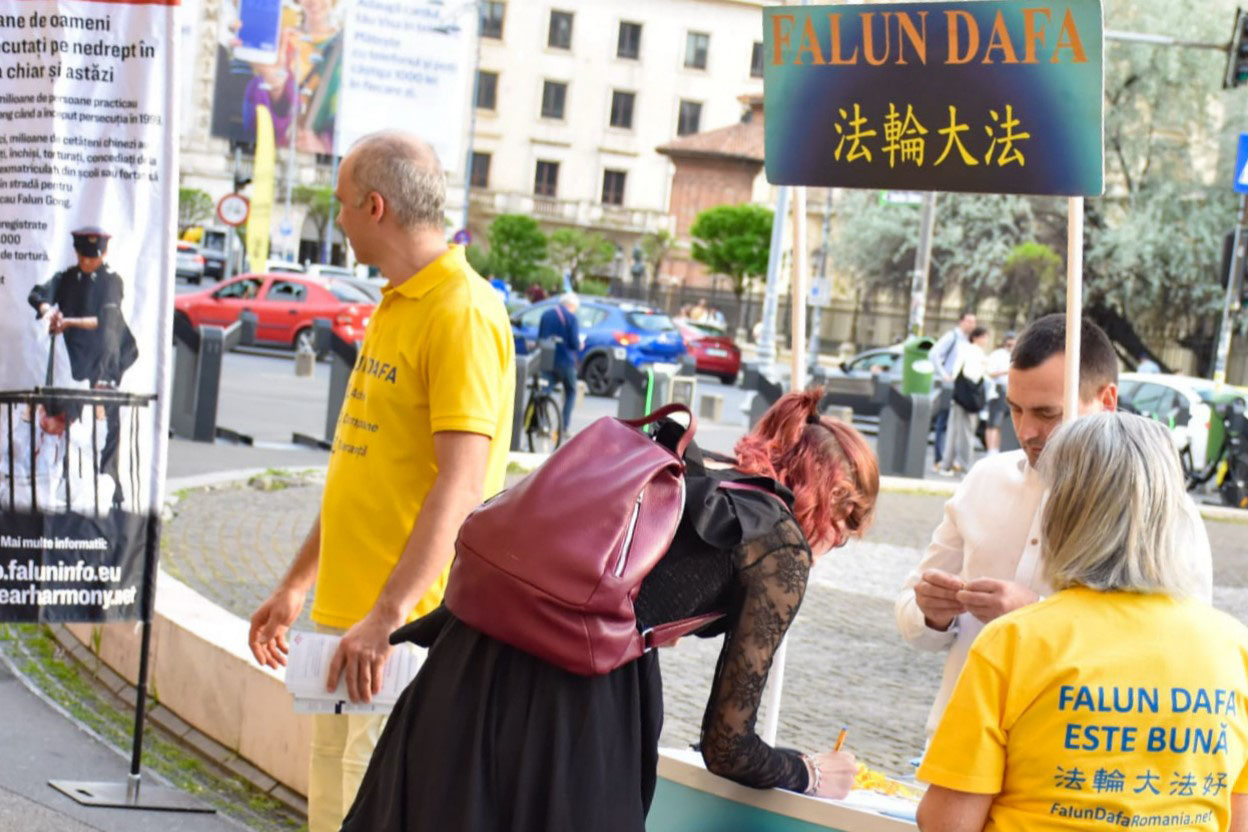 一位来自锡比乌的年轻女士看到法轮大法的横幅后立即上网搜索相关信息。她表示:“这是我第一次了解法轮大法及其在罗马尼亚和其它国家的活动。真、善、忍这样的道德原理对人的身心都有益,法轮功学员却在中国遭到如此严重的迫害,真是令人难过。”她签署了请愿书,并表示她要与布加勒斯特的亲友们分享这些信息。