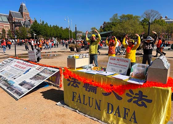 二零二五年的荷兰国王节定在了四月二十六日,这一天,在阿姆斯特丹市国立博物馆门前的广场上,民众欣喜的发现了法轮功学员的真相展位。