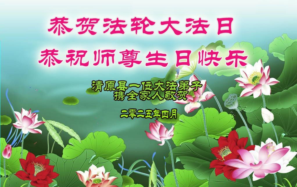 师尊好!师尊您辛苦了!感恩师尊的慈悲救度!在这普天同庆的盛大时刻,恭祝慈悲伟大师尊生日快乐!恭贺世界法轮大法日!我们要多学法,学好法,精進实修,不断的向内找,坚定的走在师尊安排的修炼路上,紧跟师尊一修到底,圆满回家。感恩师尊!感恩大法!