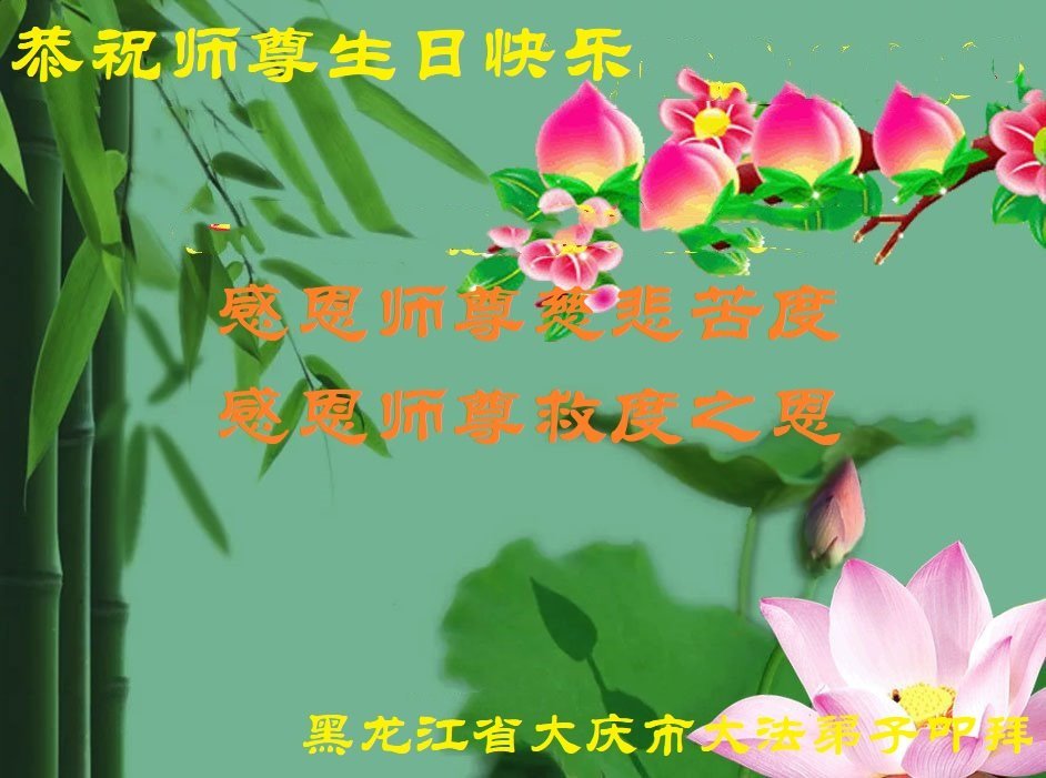 恭祝慈悲伟大的师尊生日快乐!恭贺世界法轮大法日!我在大法中身心受益,师父时时看护着我,感到了大法的洪恩。