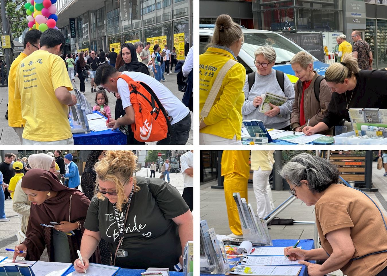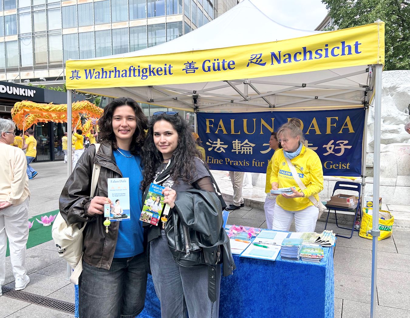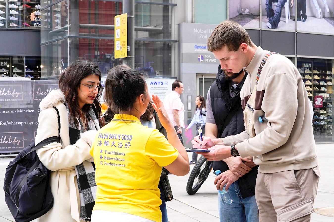 来自达姆斯达特(Darmstadt)的富达(Funda)是一名学习建筑专业的大学生。她和好友,一位来自土耳其的大学交换生认真的与一位法轮功学员交谈,她们在反迫害的征签表上签名。