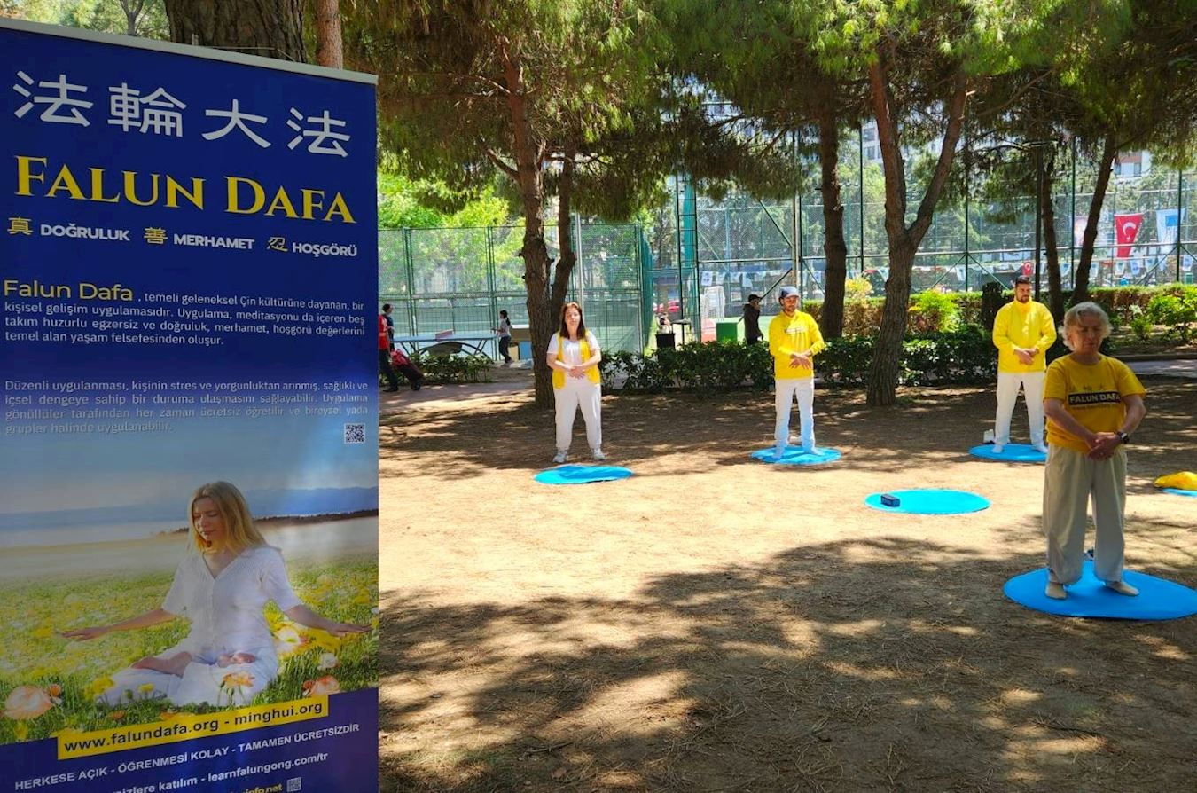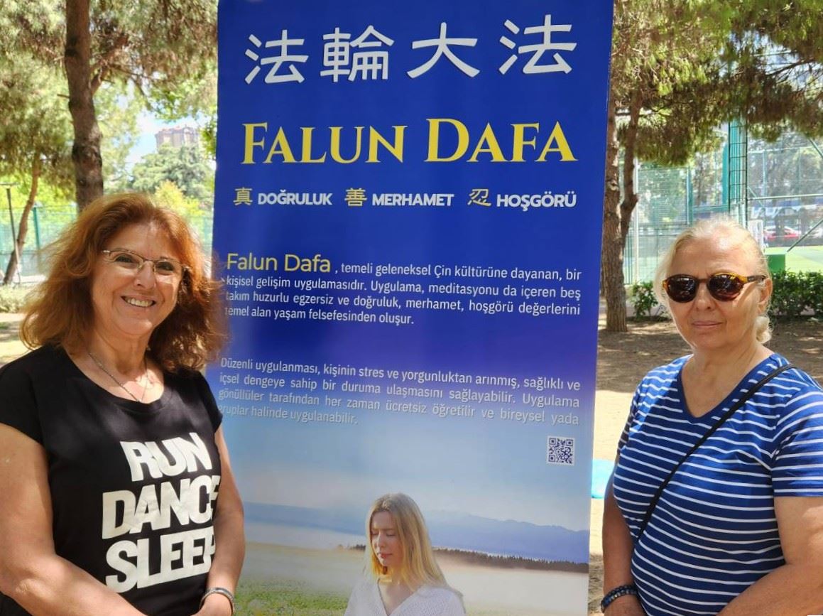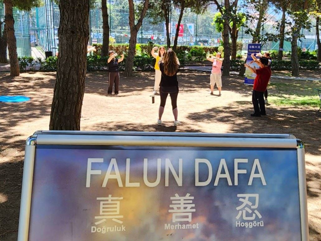 西贝尔(Sibel)是省体育运动协调员,她和来自另一个城市的大学生们一起参加了环境节。当一位学员向她讲述大法以及她在中国曾亲眼目睹的迫害时,西贝尔对这位法轮功学员说:“你们的炼功动作(让人感到)非常宁静,你们介绍法轮功时,我感到非常平和。你们的能量非常纯净。你们别离开这里,我想了解更多,读(法轮大法)书。” 西贝尔长时间地观赏着法轮功学员炼功,并把她的学生们也带过来。