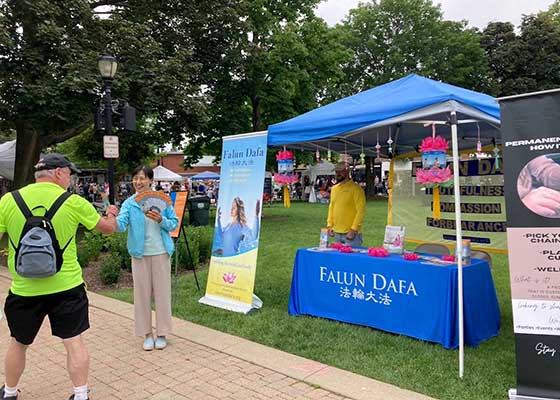 六月十二日到十五日,芝加哥法轮功学员参加了利伯蒂维尔市举办的城市节庆。很多当地居民和游客在活动中了解到了法轮大法,表达了对学炼法轮功五套功法的兴趣。