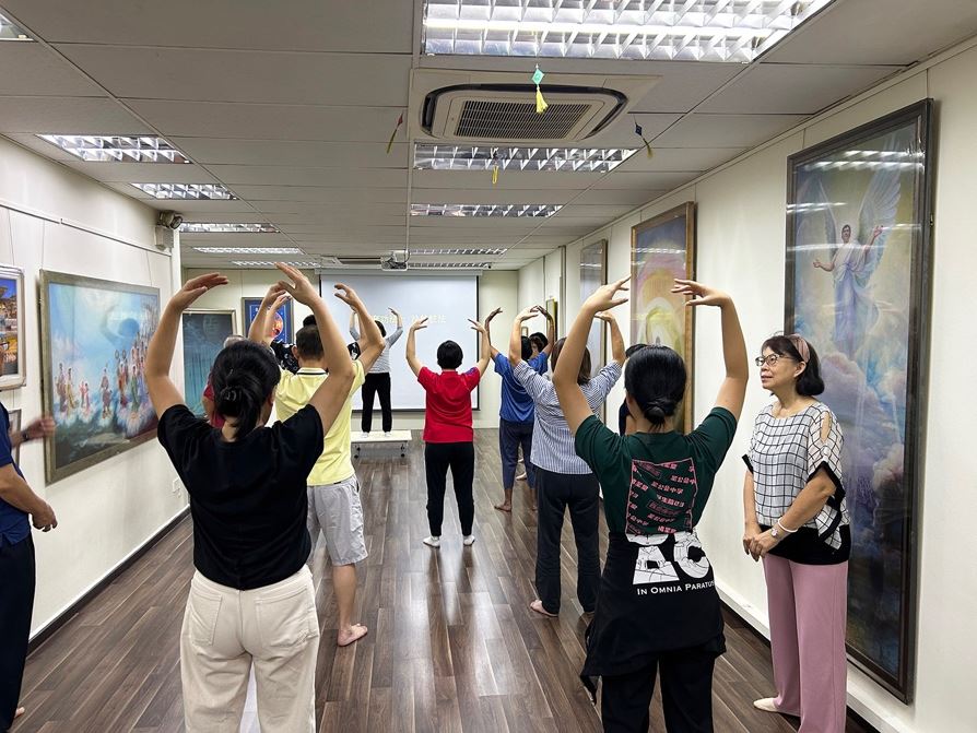这次通过参加九天班,瞭玲说她才发现自己的很多炼功动作都不对,也非常感谢义务举办九天班的老学员们帮助她耐心的纠正了炼功动作。她说动作被调整了以后感觉到了能量。