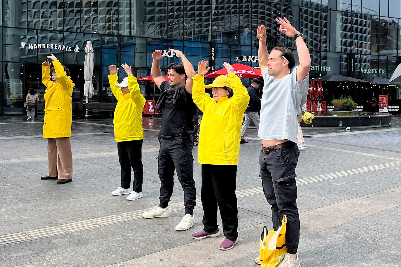 他们说:“我们觉得这是非常悲惨和可怕的!希望更多的人知道在中国发生的事,他们(中共)应该停止。人们应该享有自由。在荷兰,我们享有这种(信仰的)自由,但在中国,法轮功学员因此被杀害。”