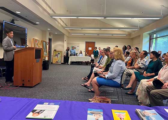 弗吉尼亚州亚裔社区服务中心6月21日举办了面向联邦众议员及州议员候选人的见面会,当地法轮功学员揭露中共在美境内的跨国镇压行为。
