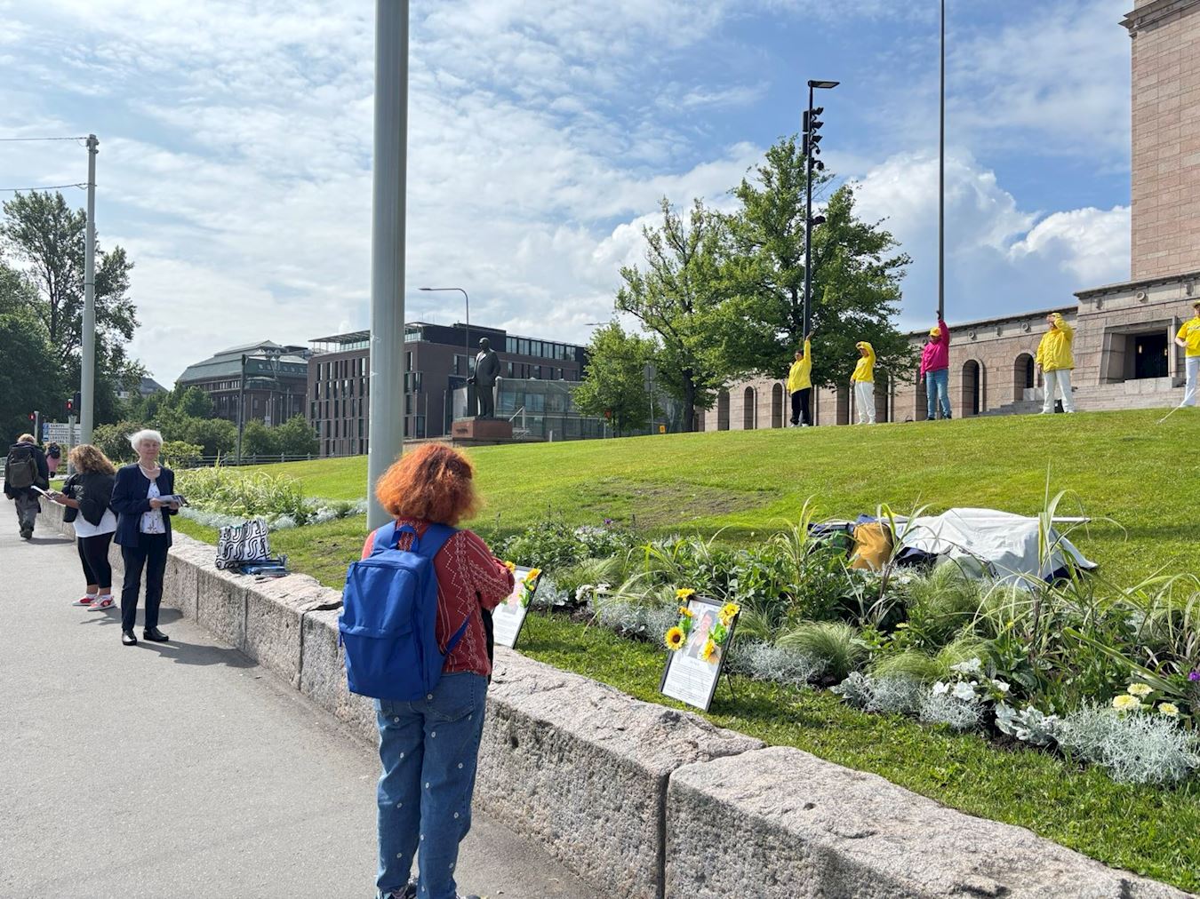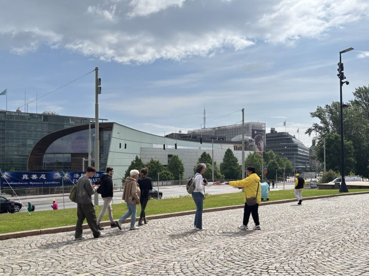 【明慧网二零二五年六月二十六日】随着芬兰议会春季会议的结束,二零二五年六月十八日,芬兰法轮功学员在首都赫尔辛基议会大厦前举行了和平抗议活动,呼吁社会关注中共对法轮功学员持续了二十六年的系统性迫害。活动中,学员们通过横幅展示、炼功演示及演讲方式,向议员和民众传递中共残酷迫害法轮功真相,并陈列因迫害致死的学员照片,悼念无辜受害者。