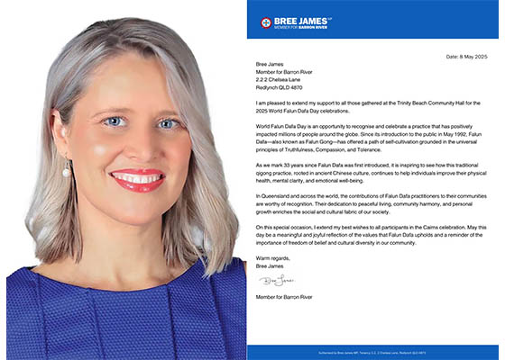 昆士兰州议员致函赞赏法轮大法对社区的奉献