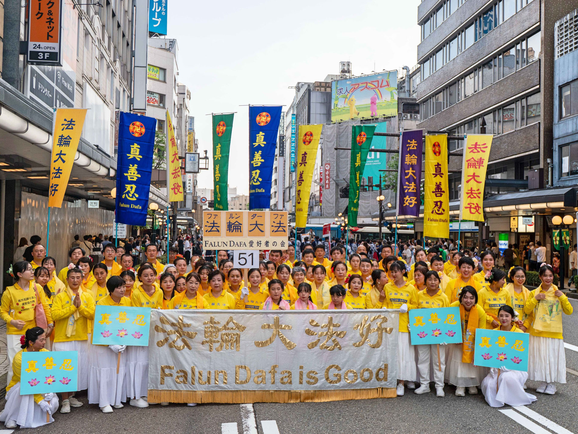 金泽百万石庆典是金泽地区规模最大的年度盛典,每年吸引四十余万人次到访。庆典主办方介绍法轮功说:“法轮功以真、善、忍为准则,是提升道德、净化身心的中国传统气功修炼方法。”