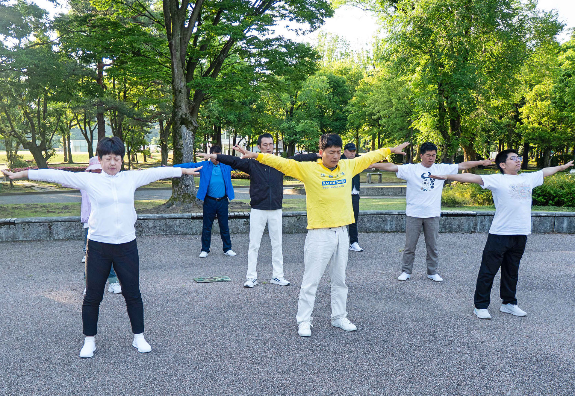 ![]() 图7:法轮功学员在石川四高纪念公园炼功 |