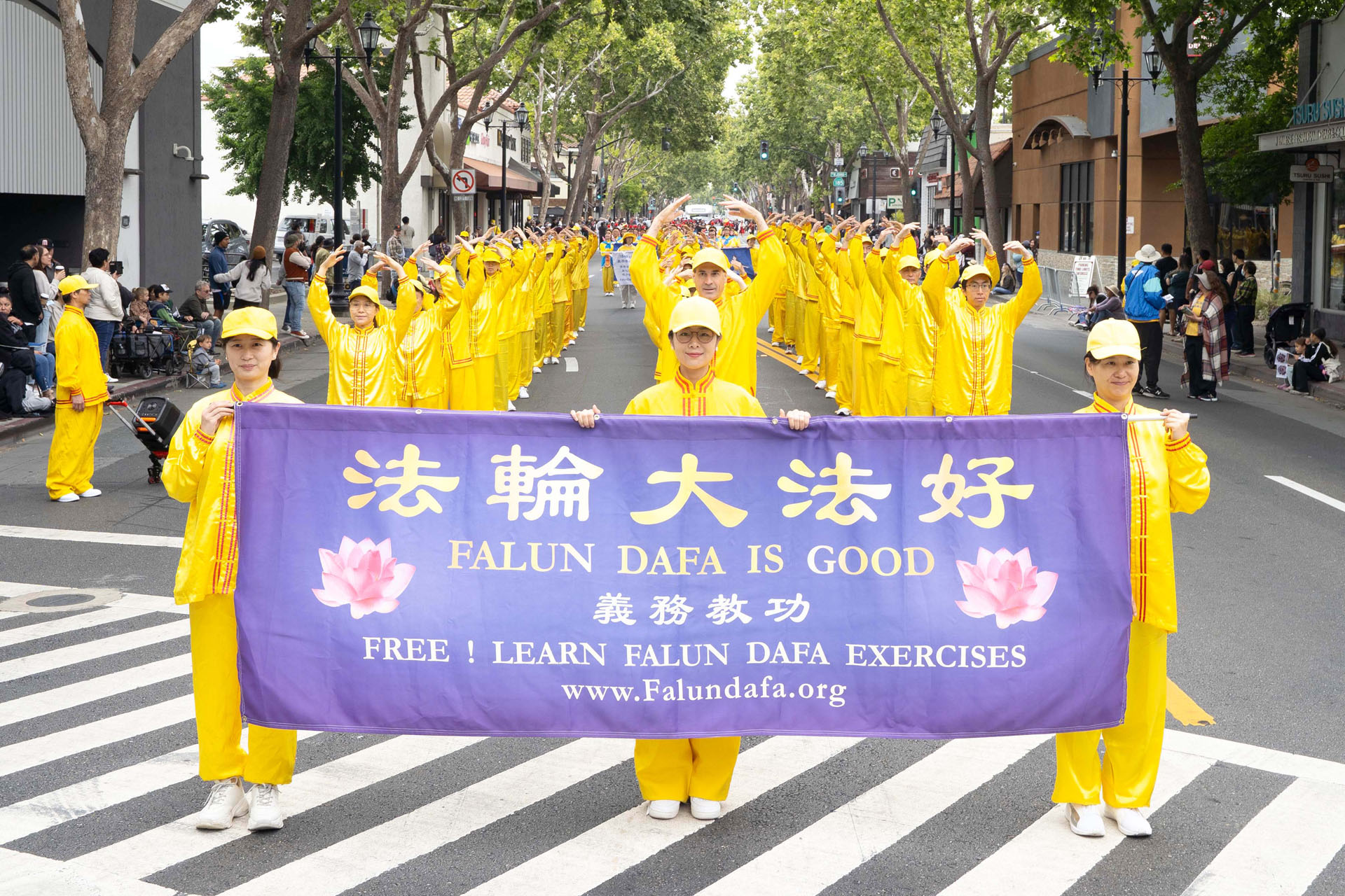 游行活动主持人、前NBC主播谢丽尔·赫德(Cheryl Hurd)在法轮功学员的队伍经过主席台时说:“现在走来的队伍是法轮大法的队伍,他们遵循的原理是真、善、忍,我喜欢这个原理,所有的人都可以学。他们去年就来参加游行了。”