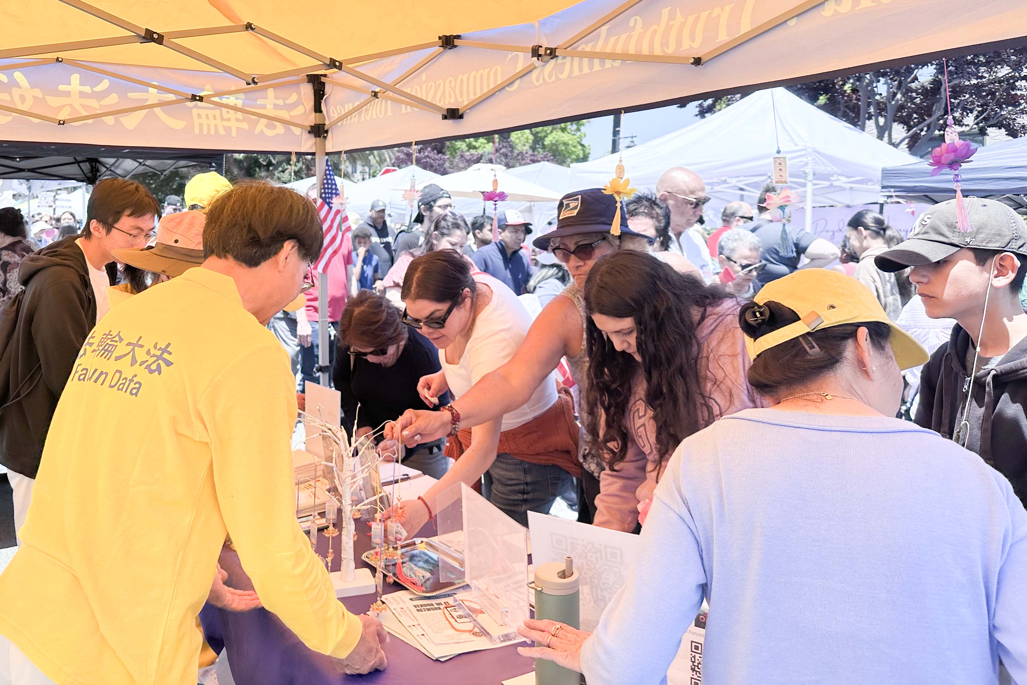 ![]() 图8~11:法轮功学员设置的展位,人们络绎不绝地来了解真相。 |