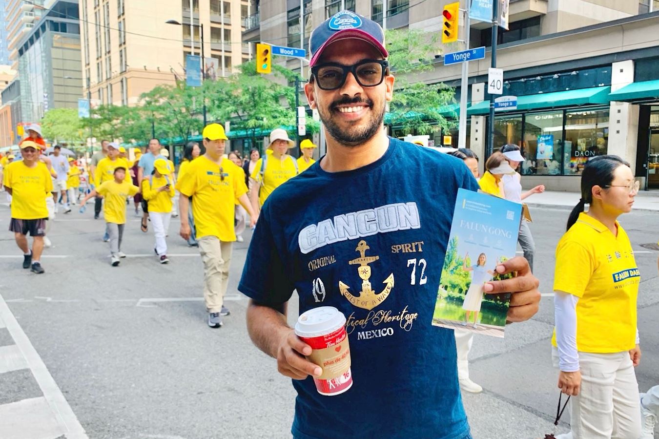 阿迪(Adi)居住在多伦多市区,他来自巴勒斯坦。当他从家中出来,正好看到了法轮功学员的游行队伍,他对来向他介绍大法和讲真相的法轮功学员说:“这个游行真壮观,气势磅礴。”
