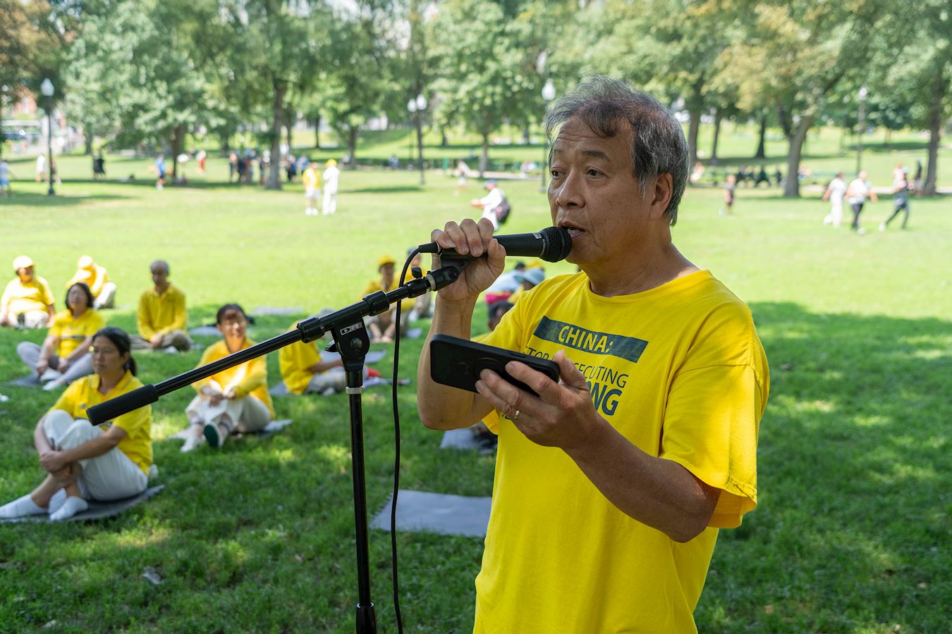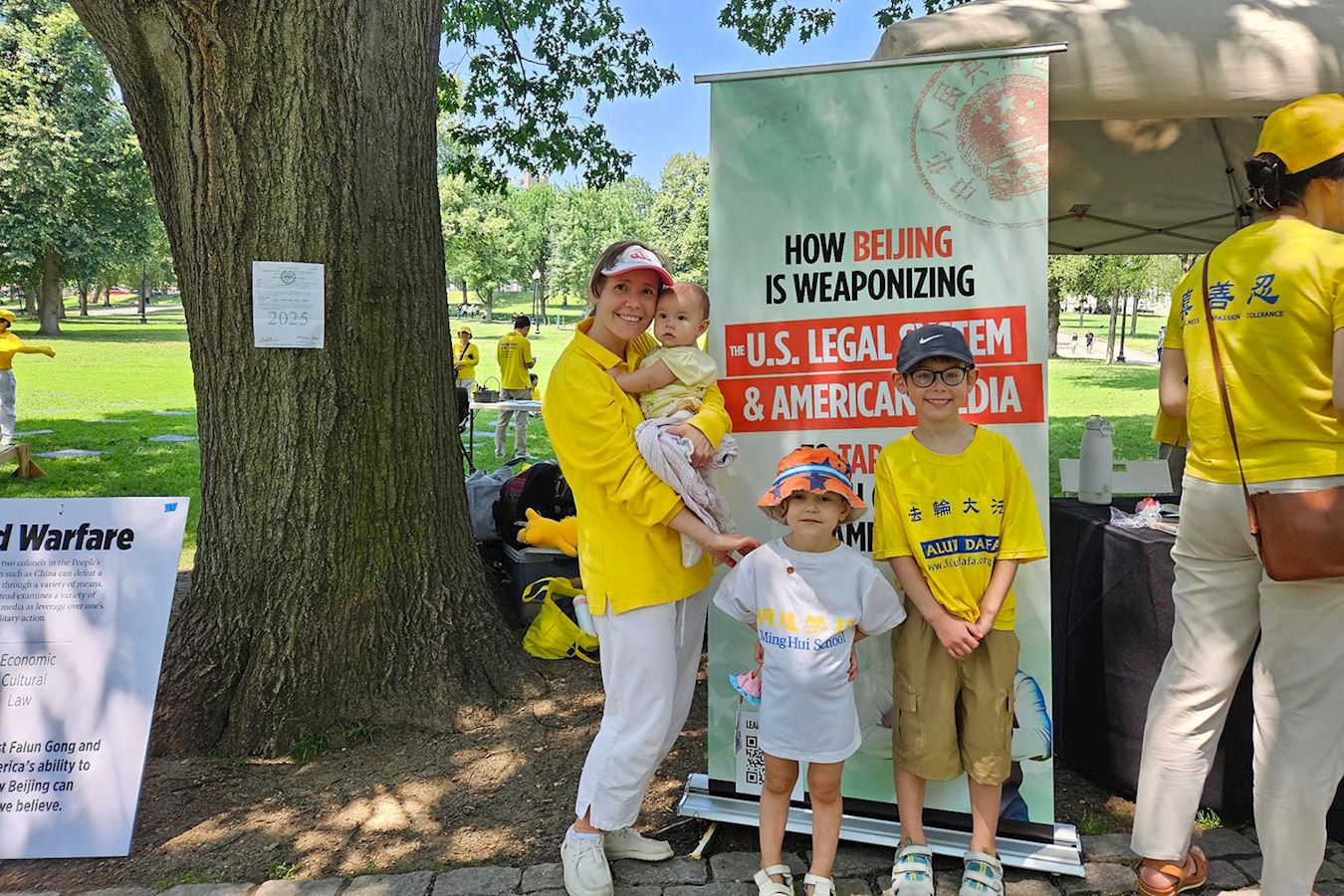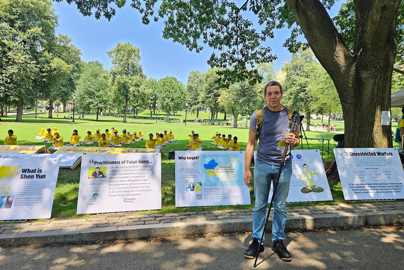 图1:二零二五年七月十二日,波士顿法轮功学员在公共公园集会,呼吁制止中共跨国镇压。