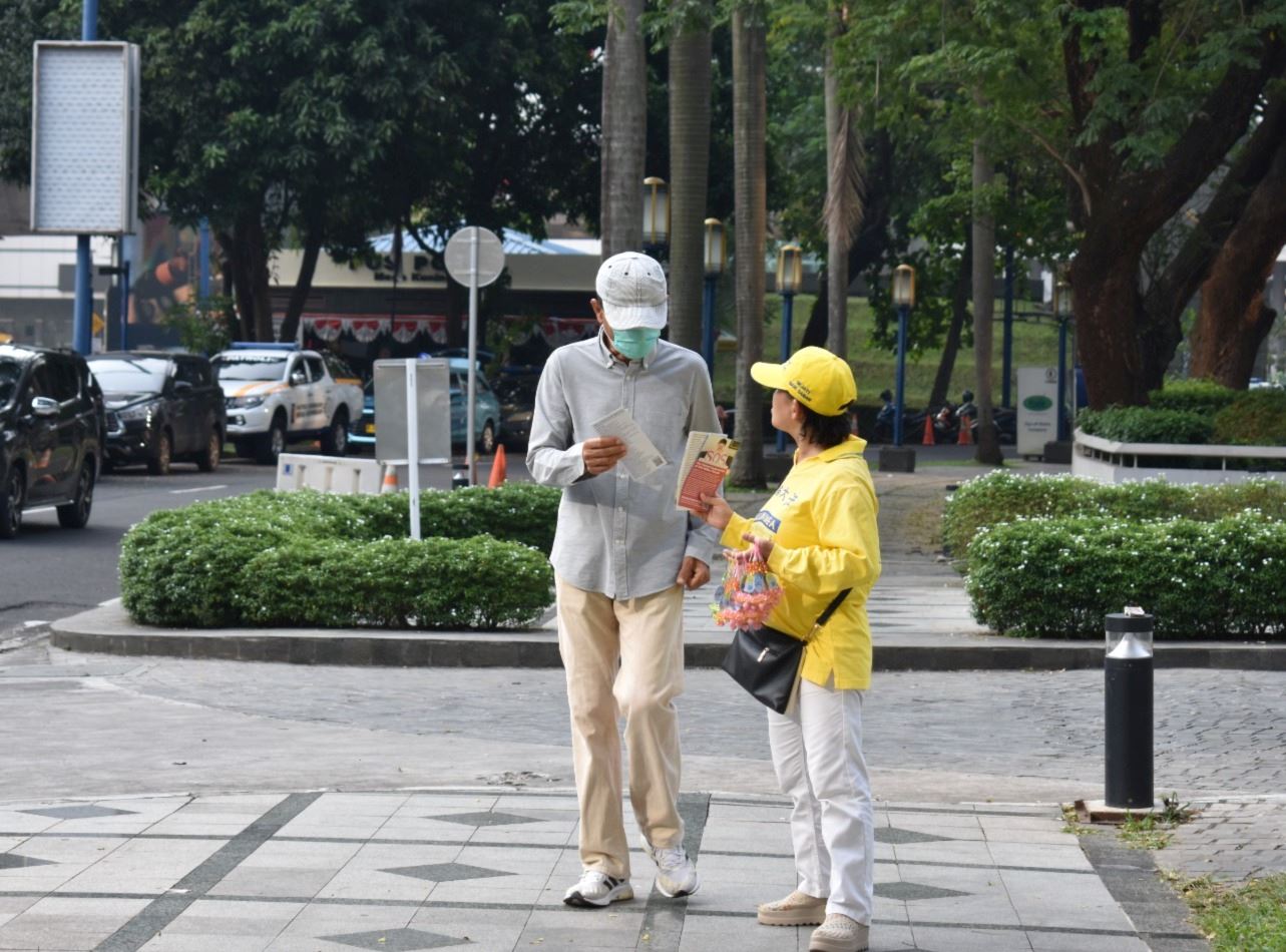 雅加达法轮功学员在中共大使馆前举行集会和烛光守夜活动,呼吁中共立即停止迫害。当天的活动以集体炼功开始,吸引了许多路人驻足观看。学员向他们赠送真相资料,讲述目前仍然在中国发生的严重侵犯人权的行为。人们称赞法轮功学员寻求正义和讲述真相的方式是和平和有尊严的。