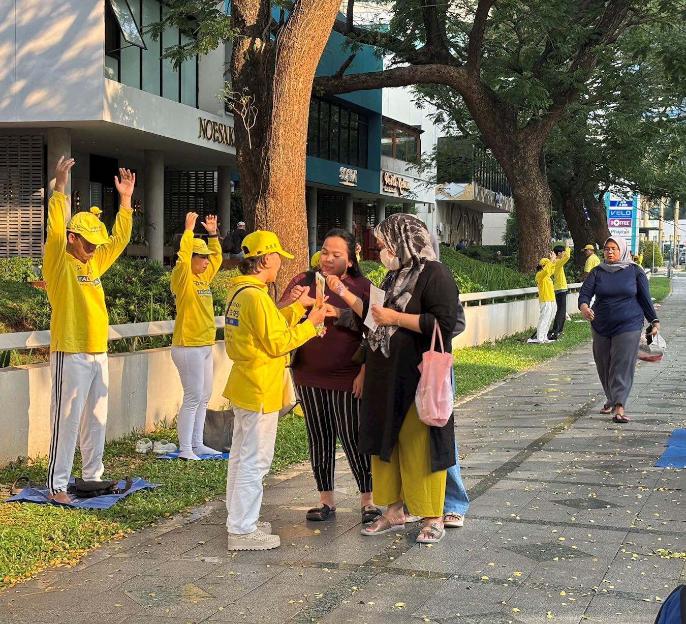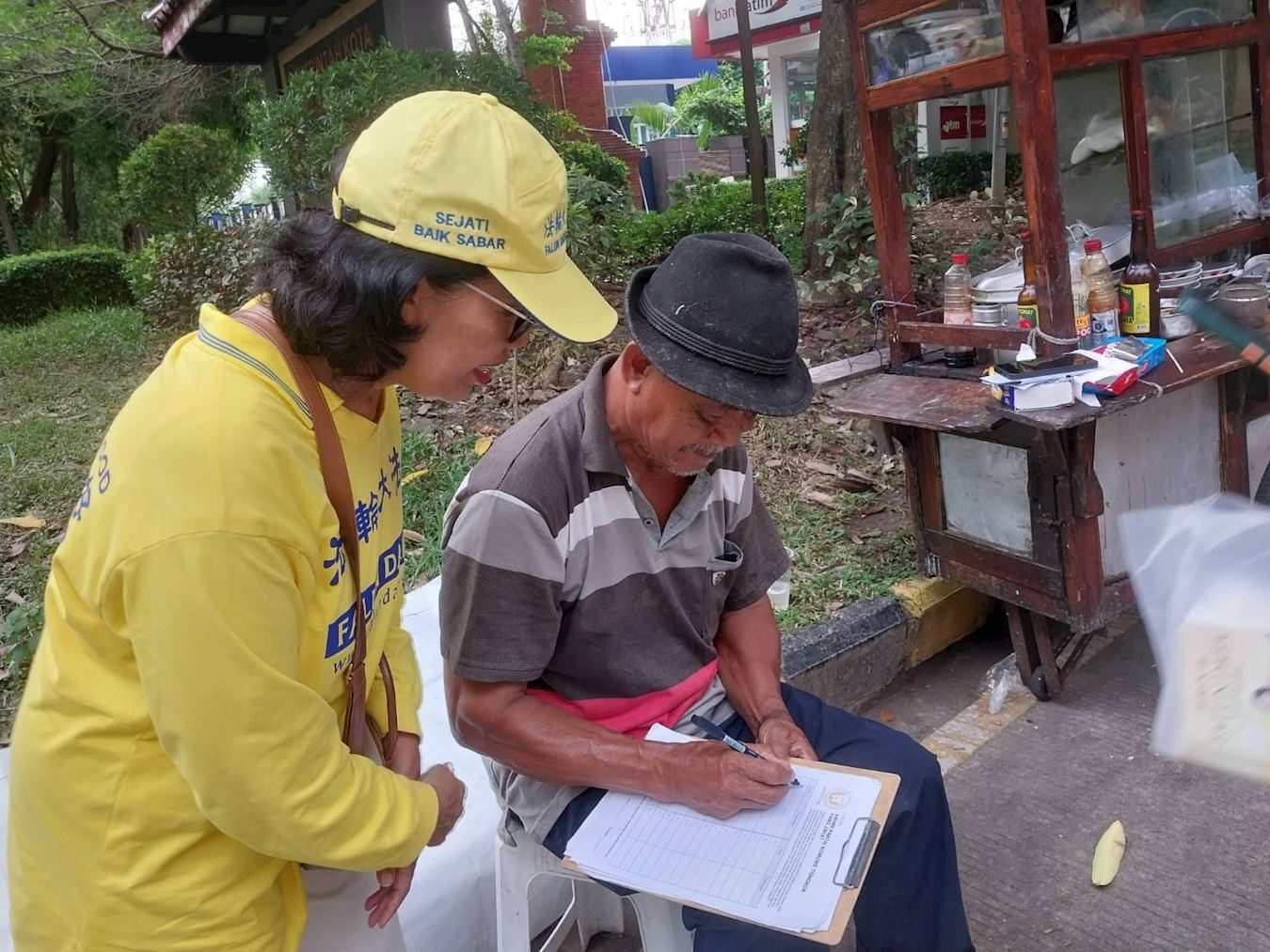 另一位路人出于好奇走近学员,询问为何举办这场活动。他还询问学员们在活动期间是否遭到干扰,并向学员表达了鼓励和支持。