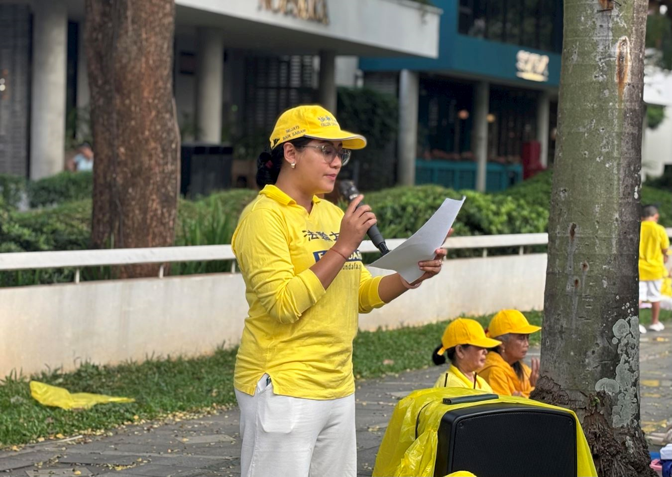 印尼法轮大法学会发言人萨斯特拉尼(Sastrani)女士在集会中说:“中共不仅在中国迫害法轮功超过二十六年,还滥用其外交渠道和国家资金在全球范围内收买影响力。它利用海外媒体和社交媒体传播虚假信息,对法轮功及其创始人进行诽谤,目的是放大虚假信息并压制真相。”