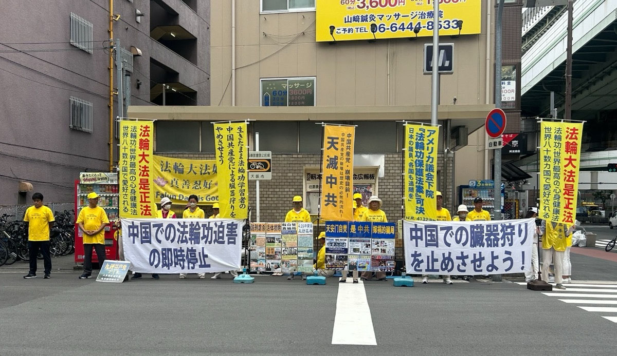 ![]() 图2:七月十八日,大阪部分法轮功学员在大阪的中领馆前呼吁停止迫害 |