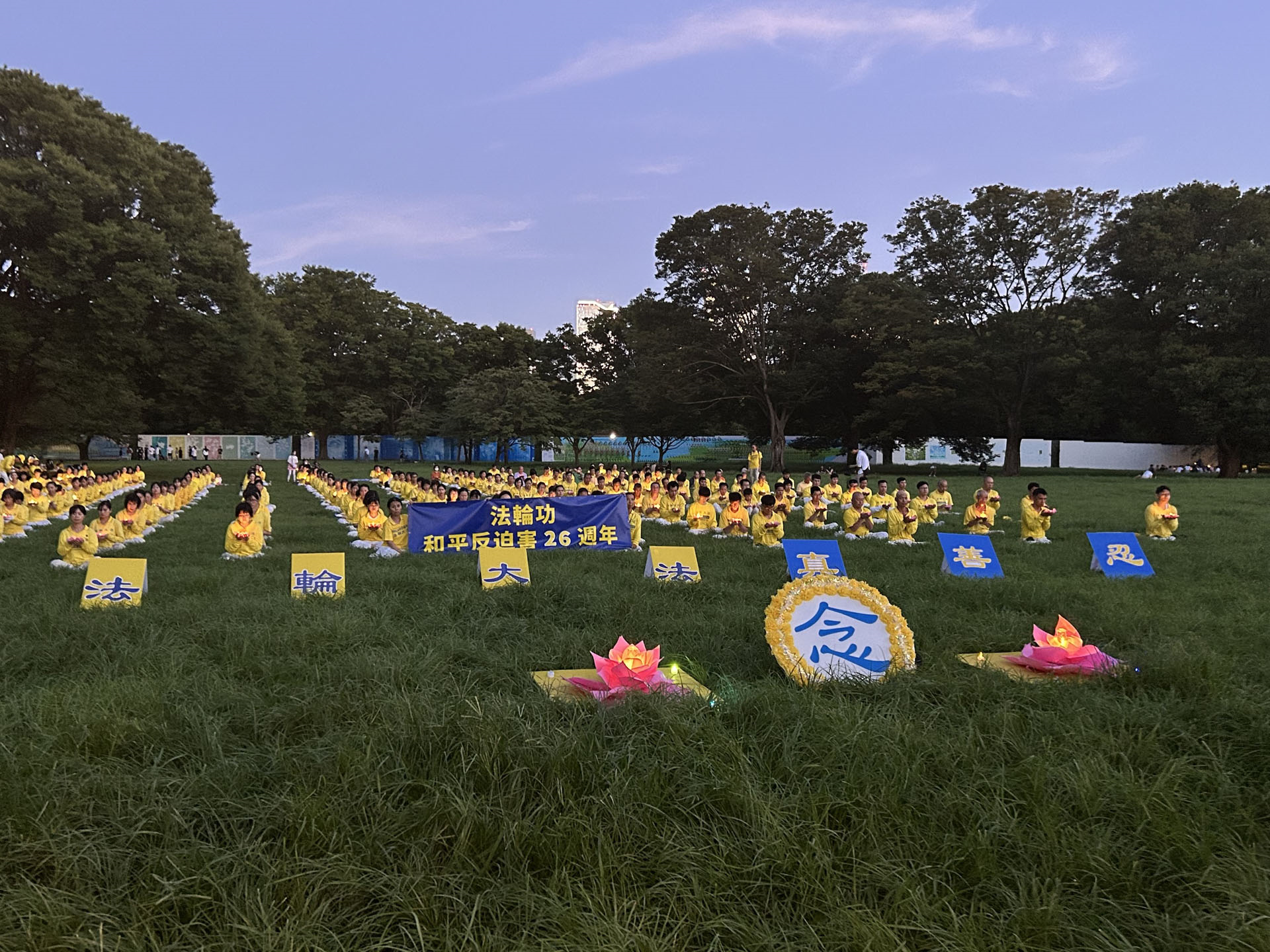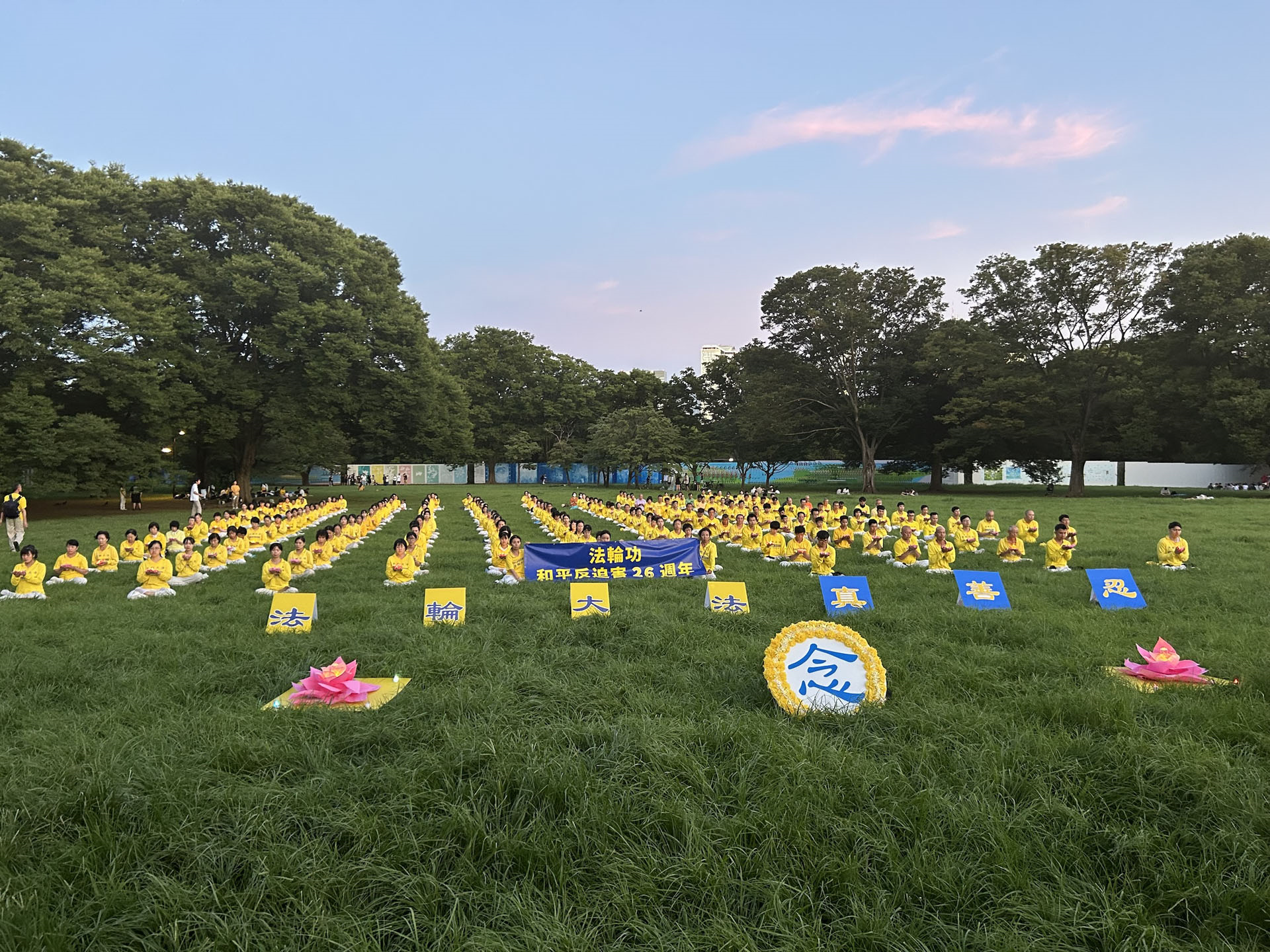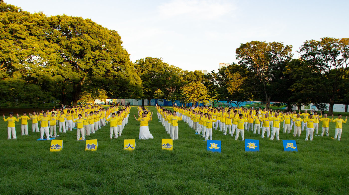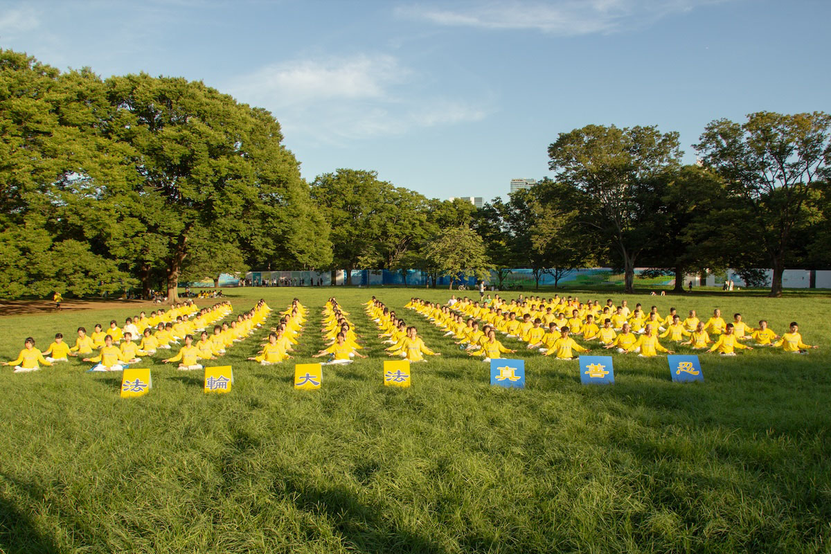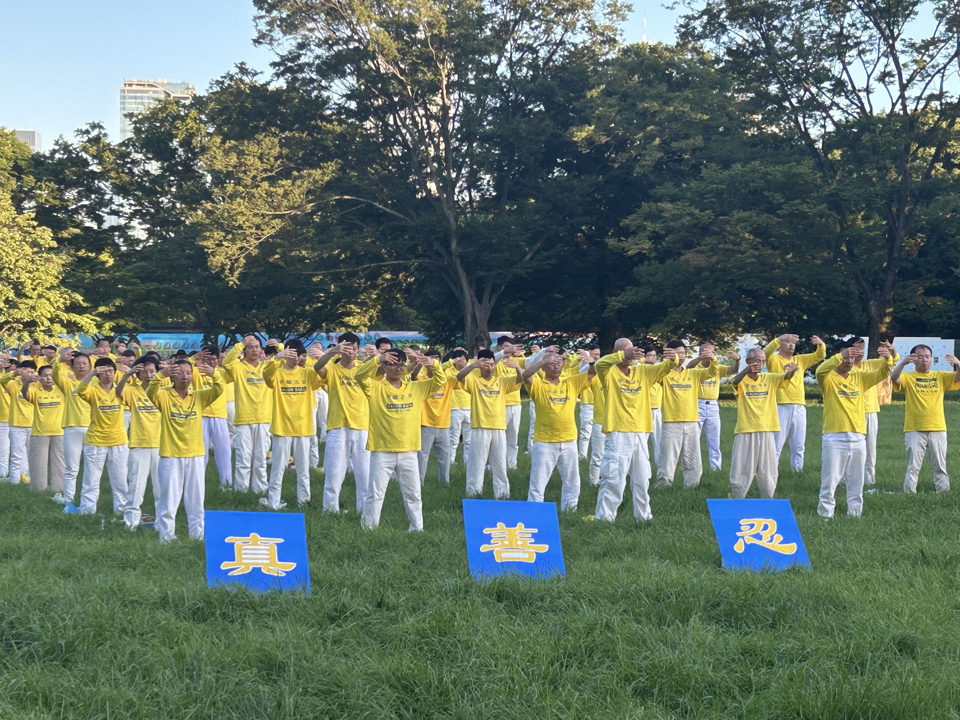七月二十日下午两点,法轮功学员来到著名的代代木公园大炼功,讲真相。