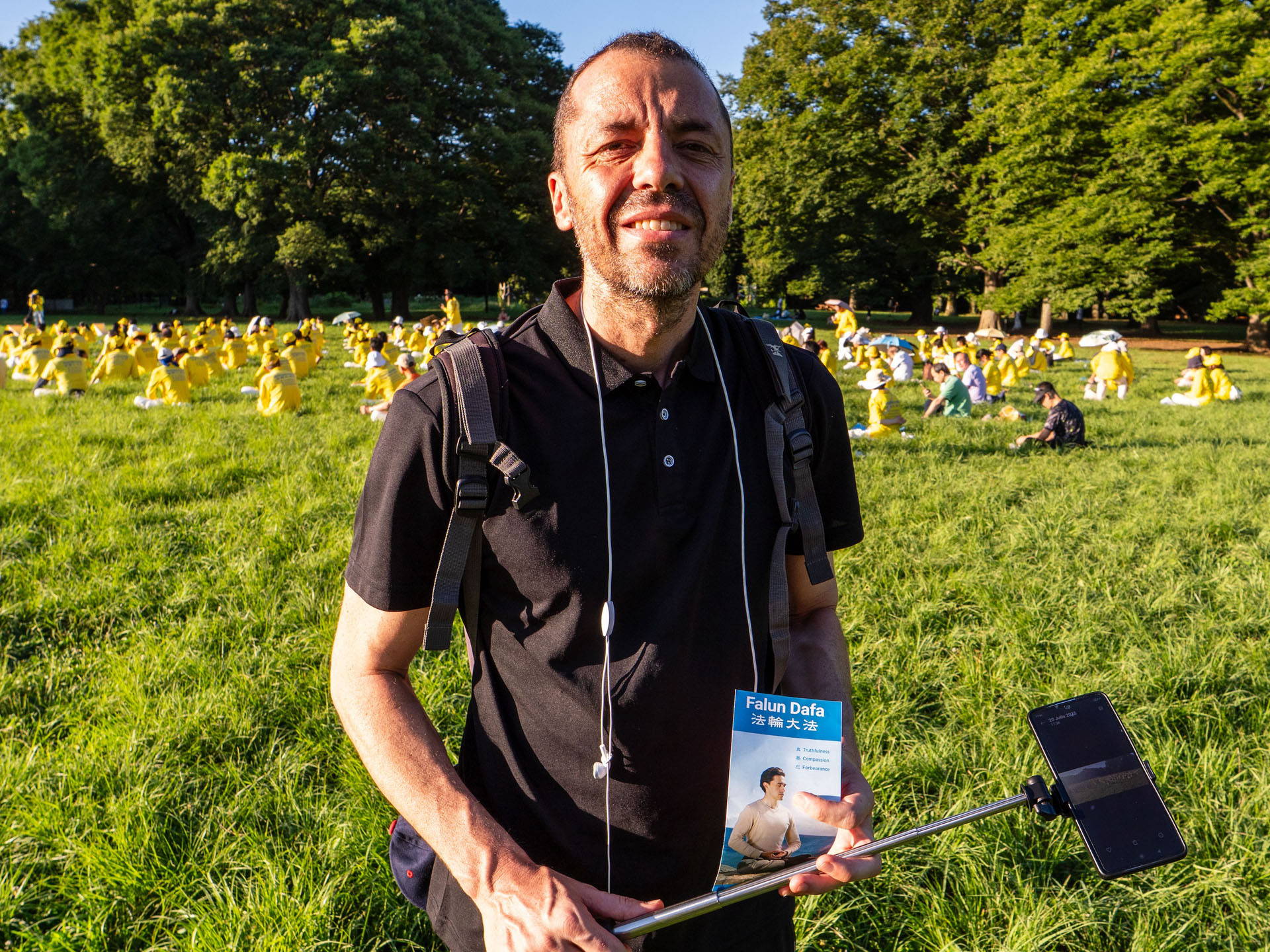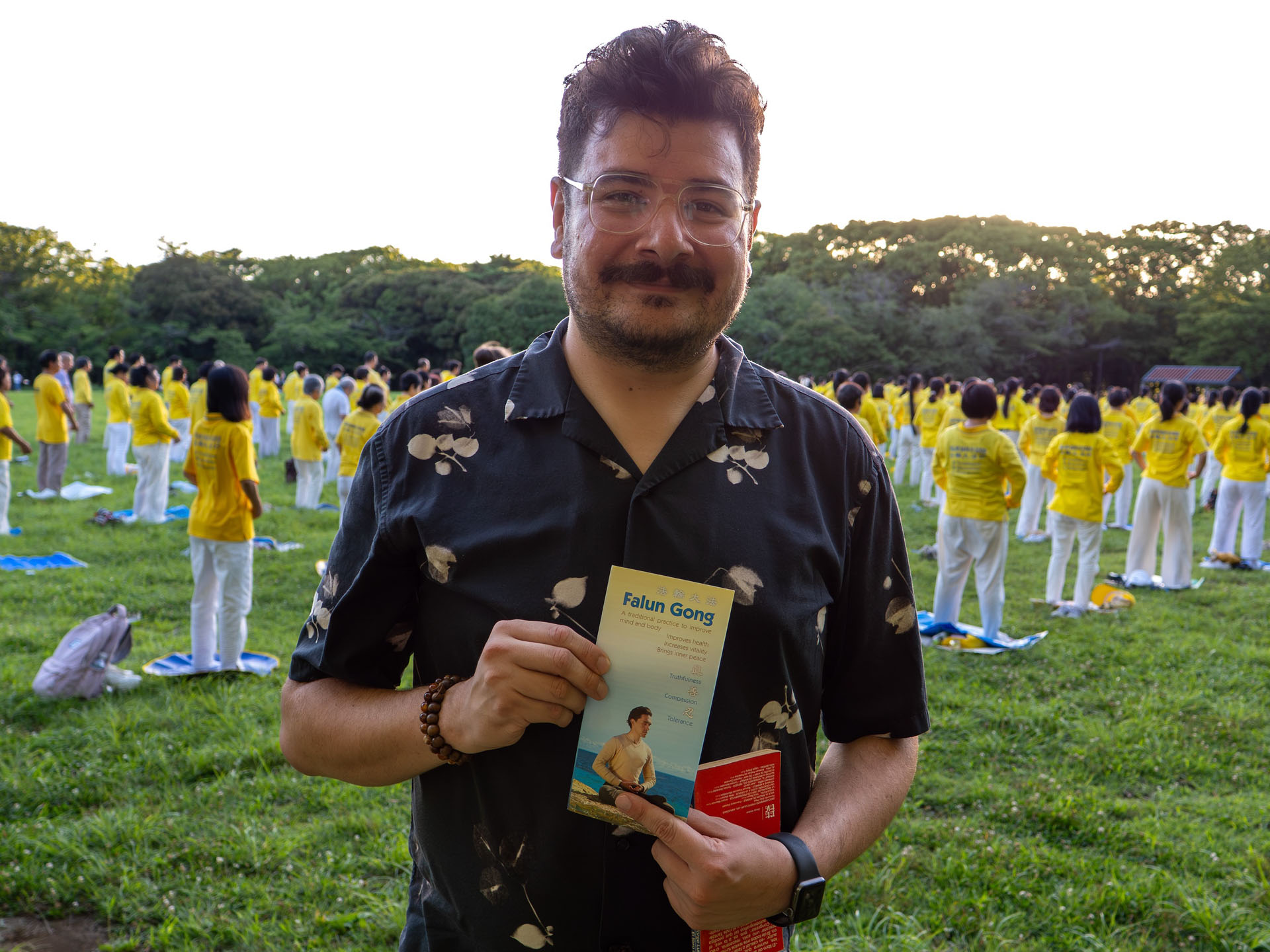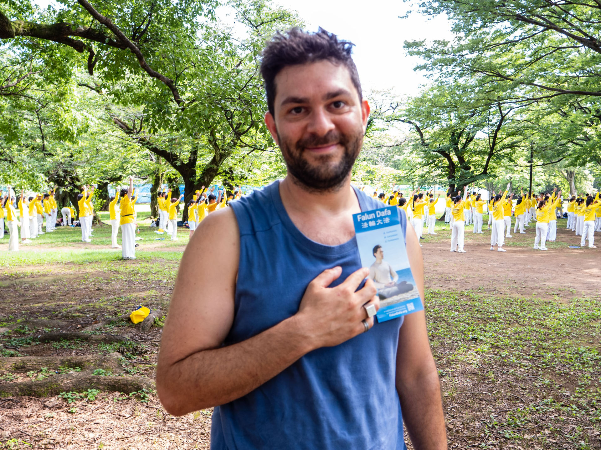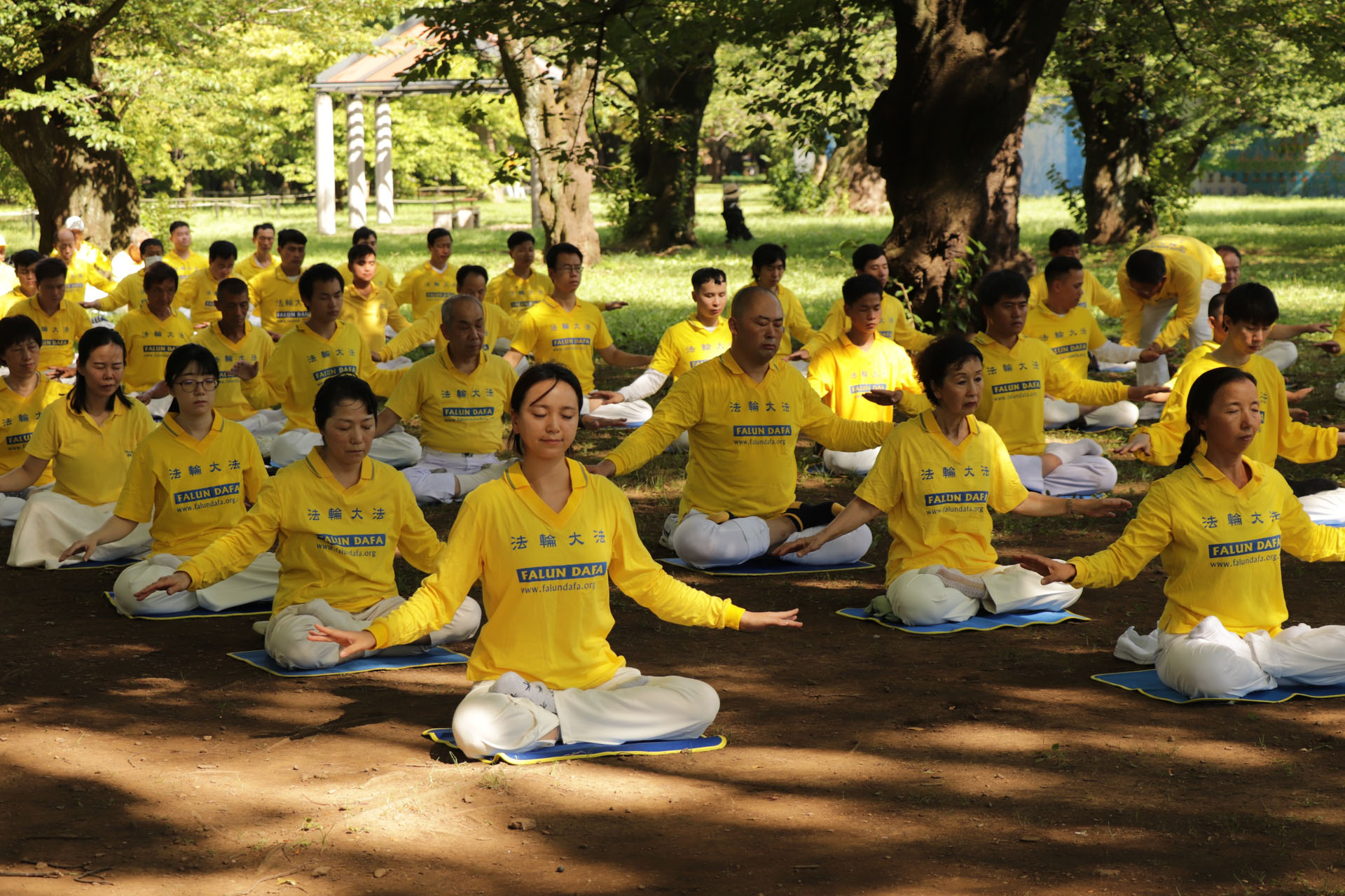 七月二十日下午两点,法轮功学员来到著名的代代木公园大炼功,讲真相。