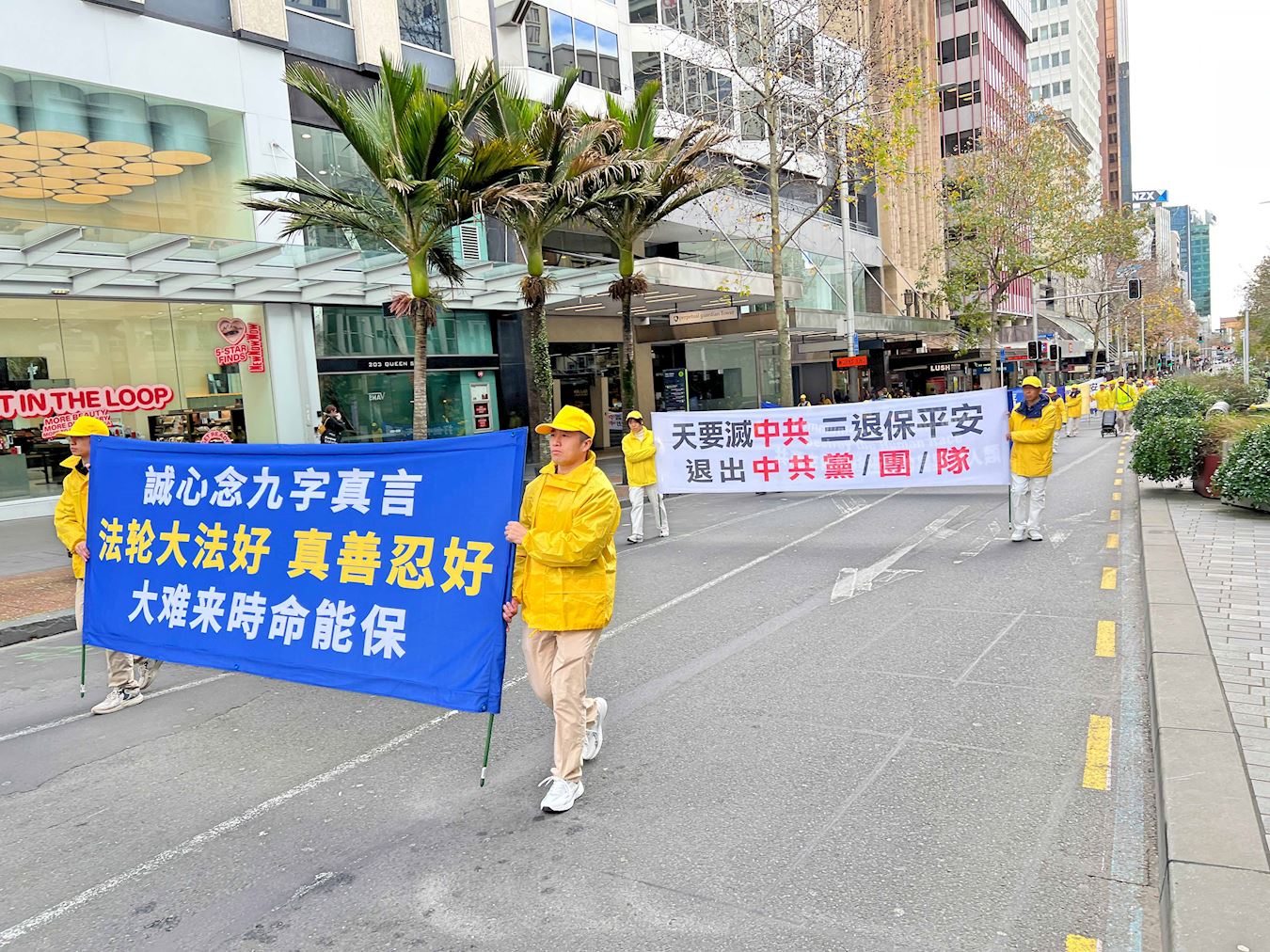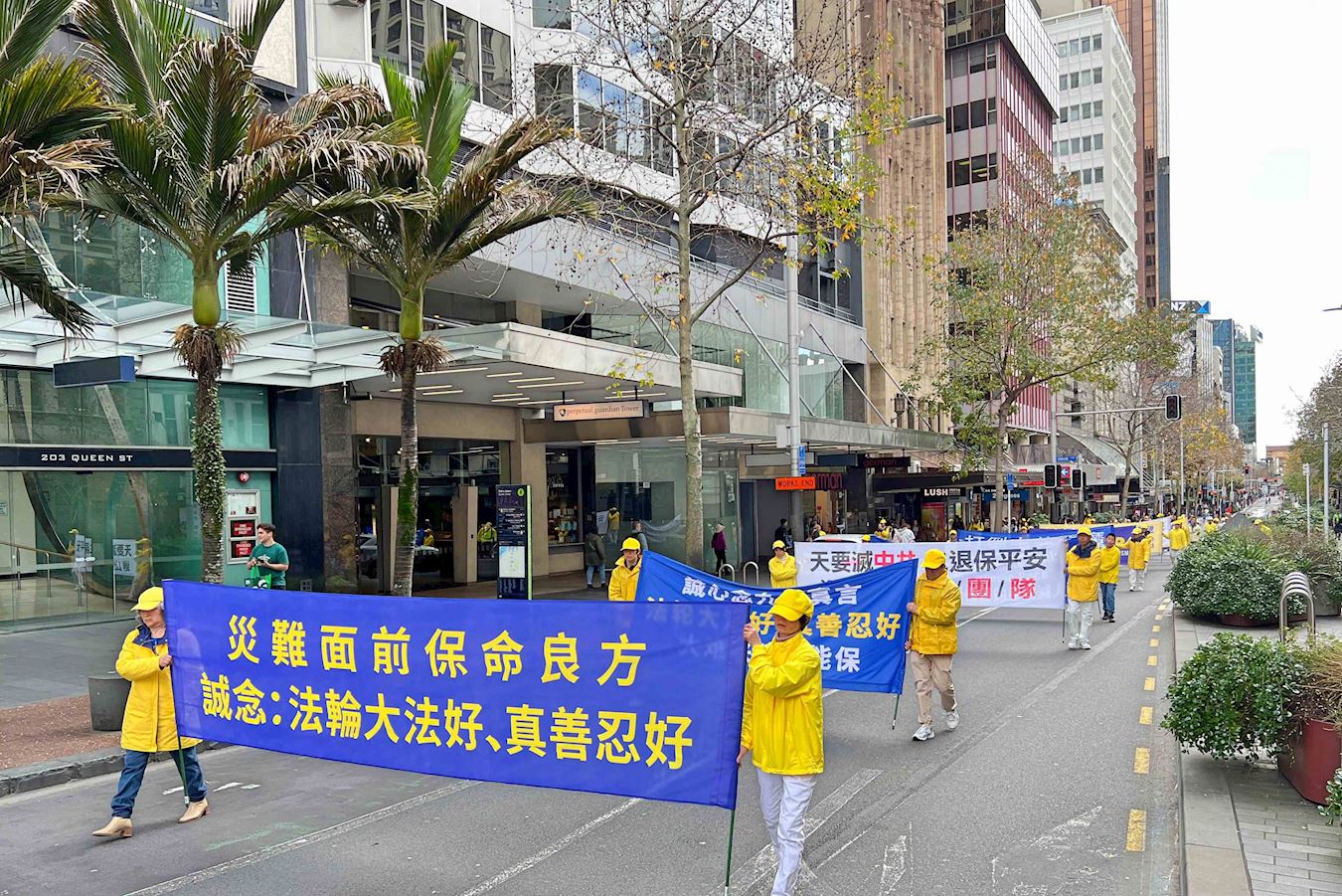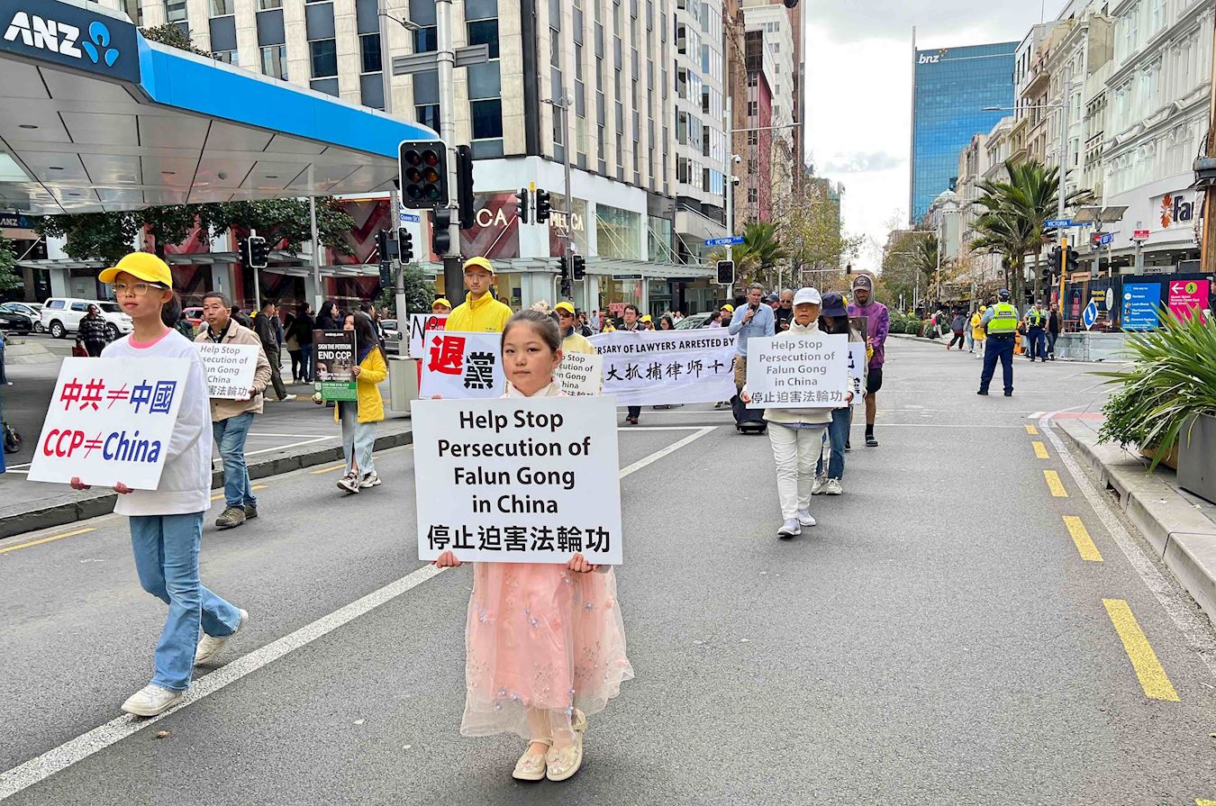 ![]() 图1~14:二零二五年七月十九日星期六,新西兰法轮功学员在奥克兰市中心皇后大街游行,反对中共长达二十六年的迫害。 |