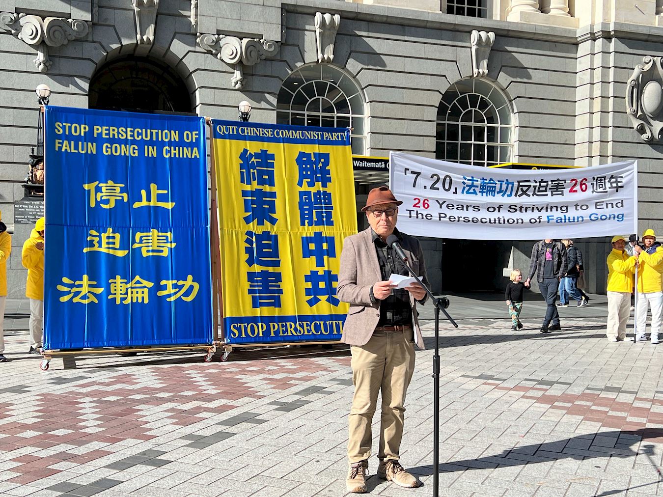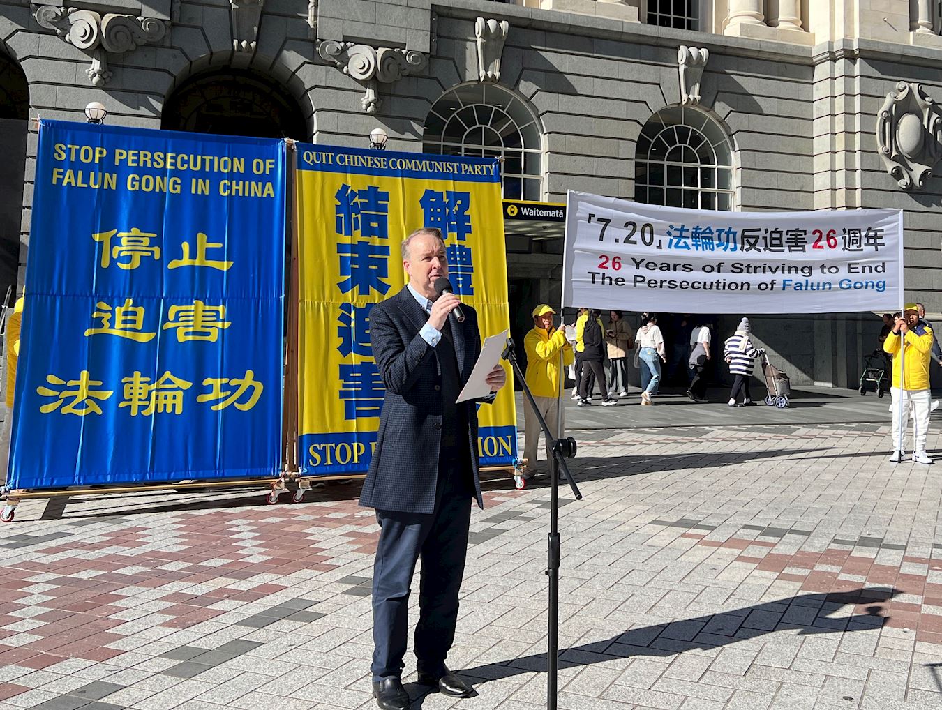 在集会上,新西兰民主平台的乐恺安先生严厉谴责中共迫害法轮功等群体,并呼吁国际社会关注中国人权危机。