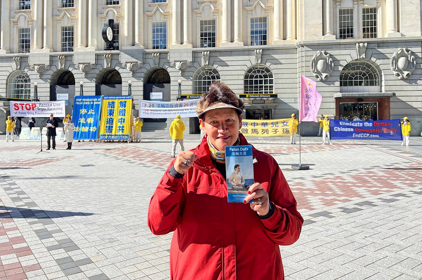 她说:“我知道法轮大法是一种打坐修炼,也知道他们信奉真、善、忍的原理。我了解到,这个团体因为他们的信仰而被中国政府长期迫害。这是不对的,是完全错误的。”