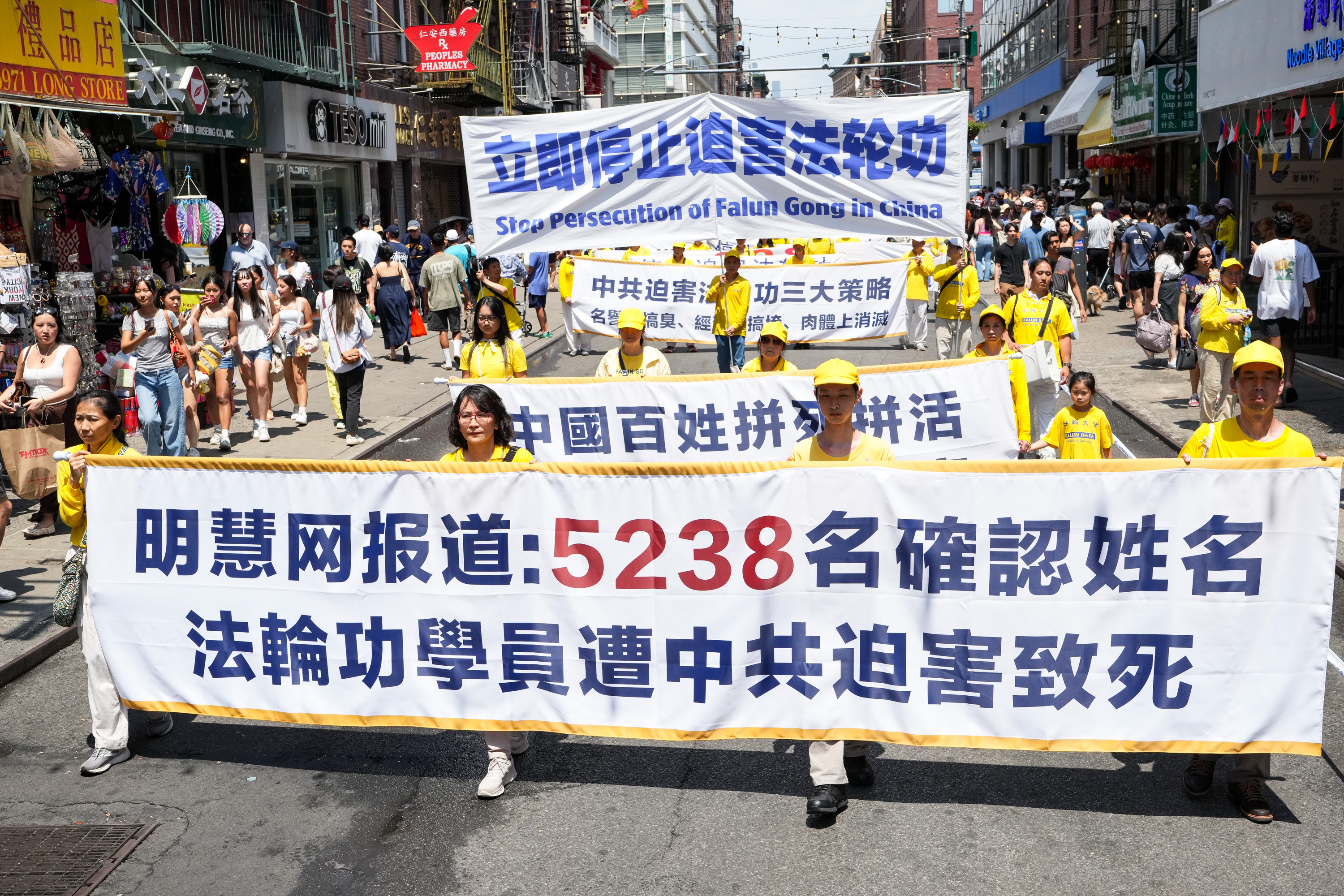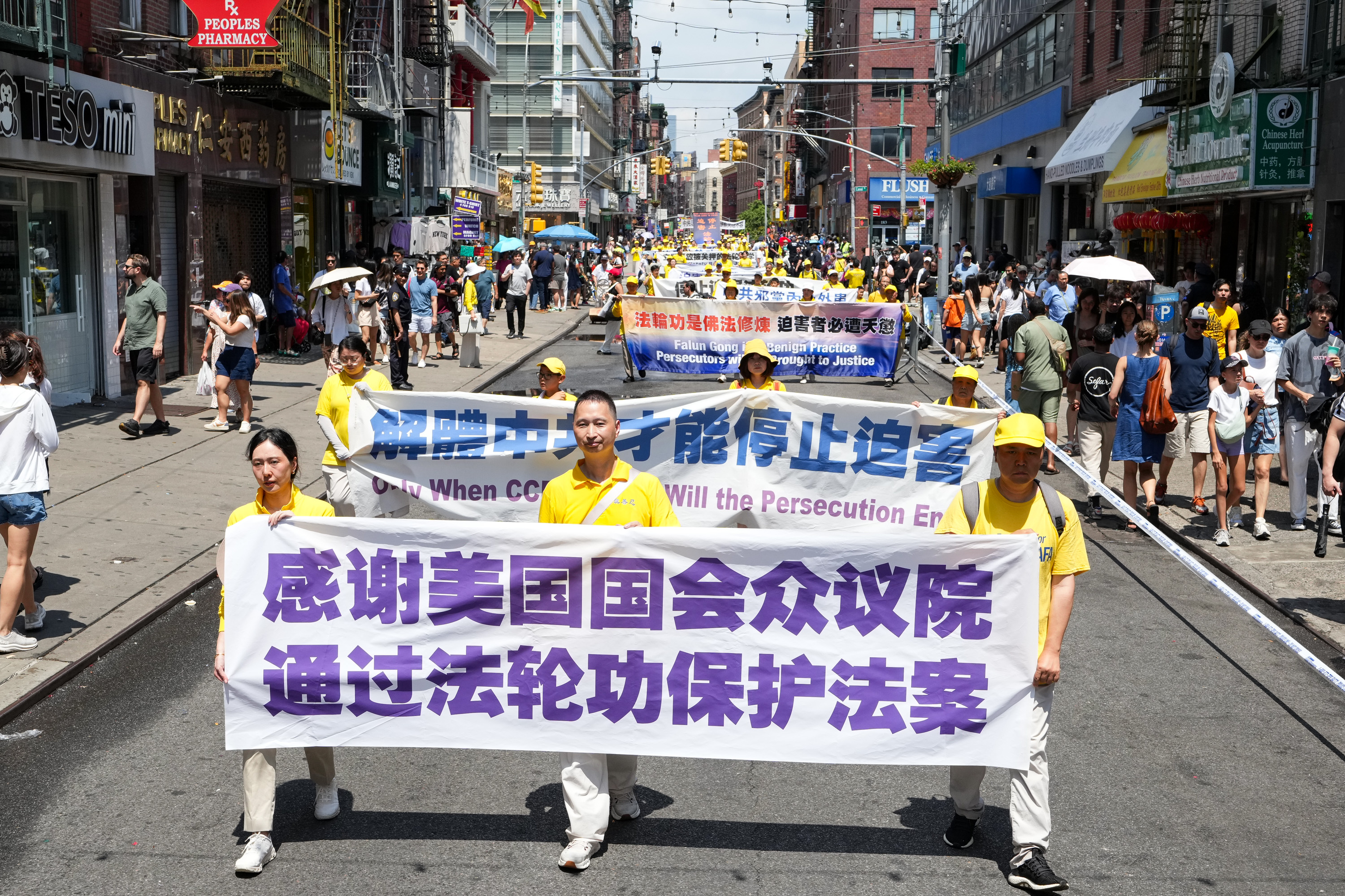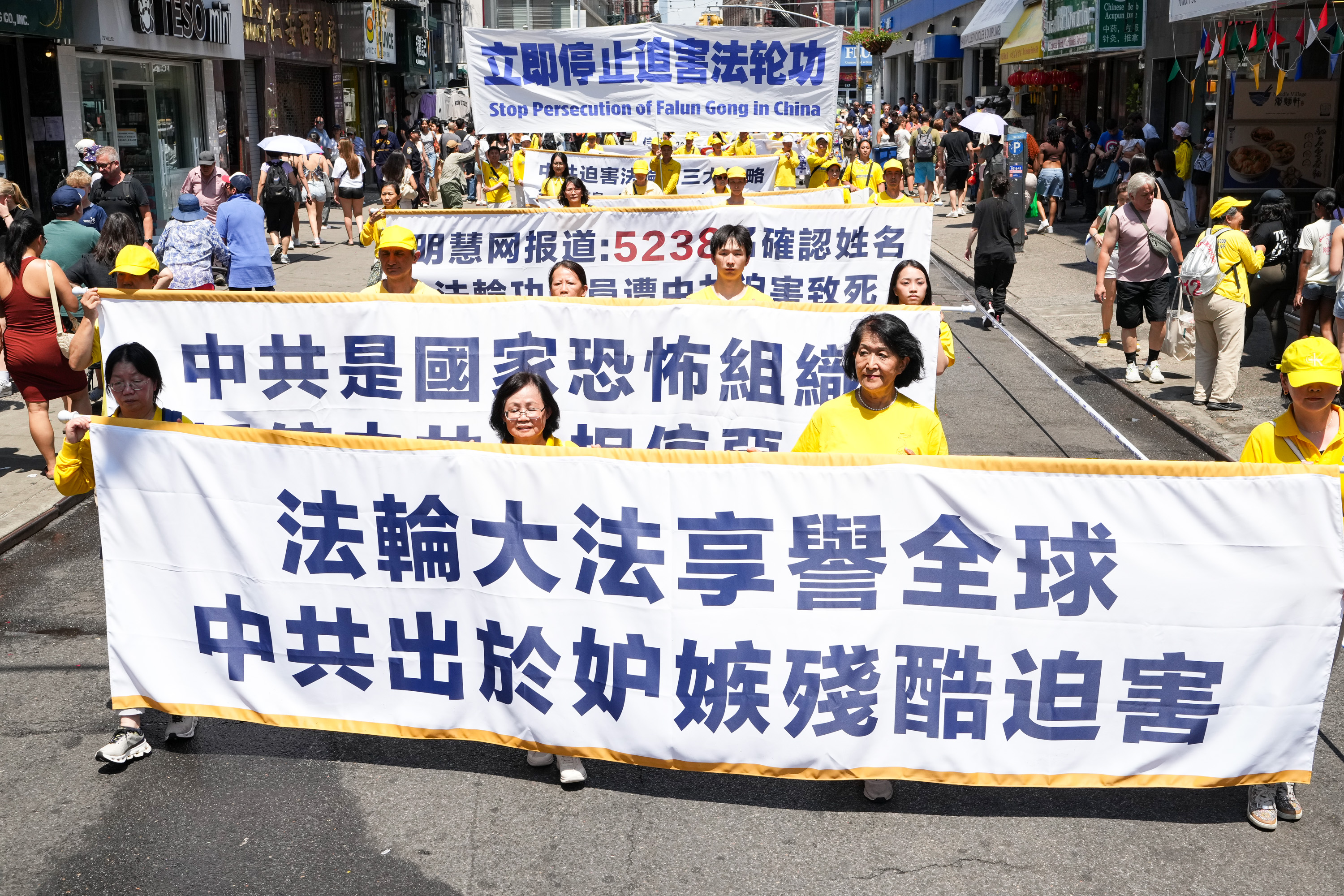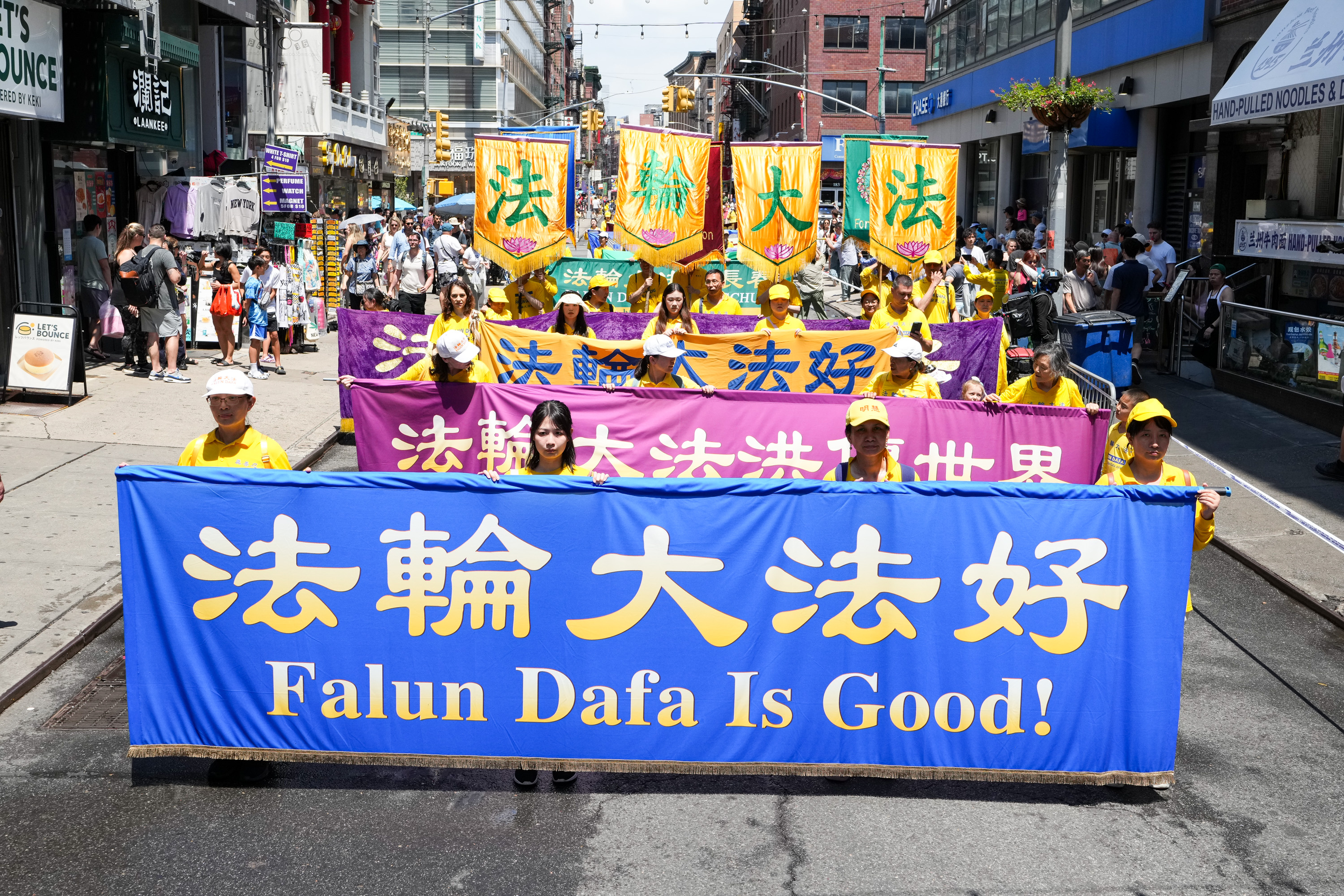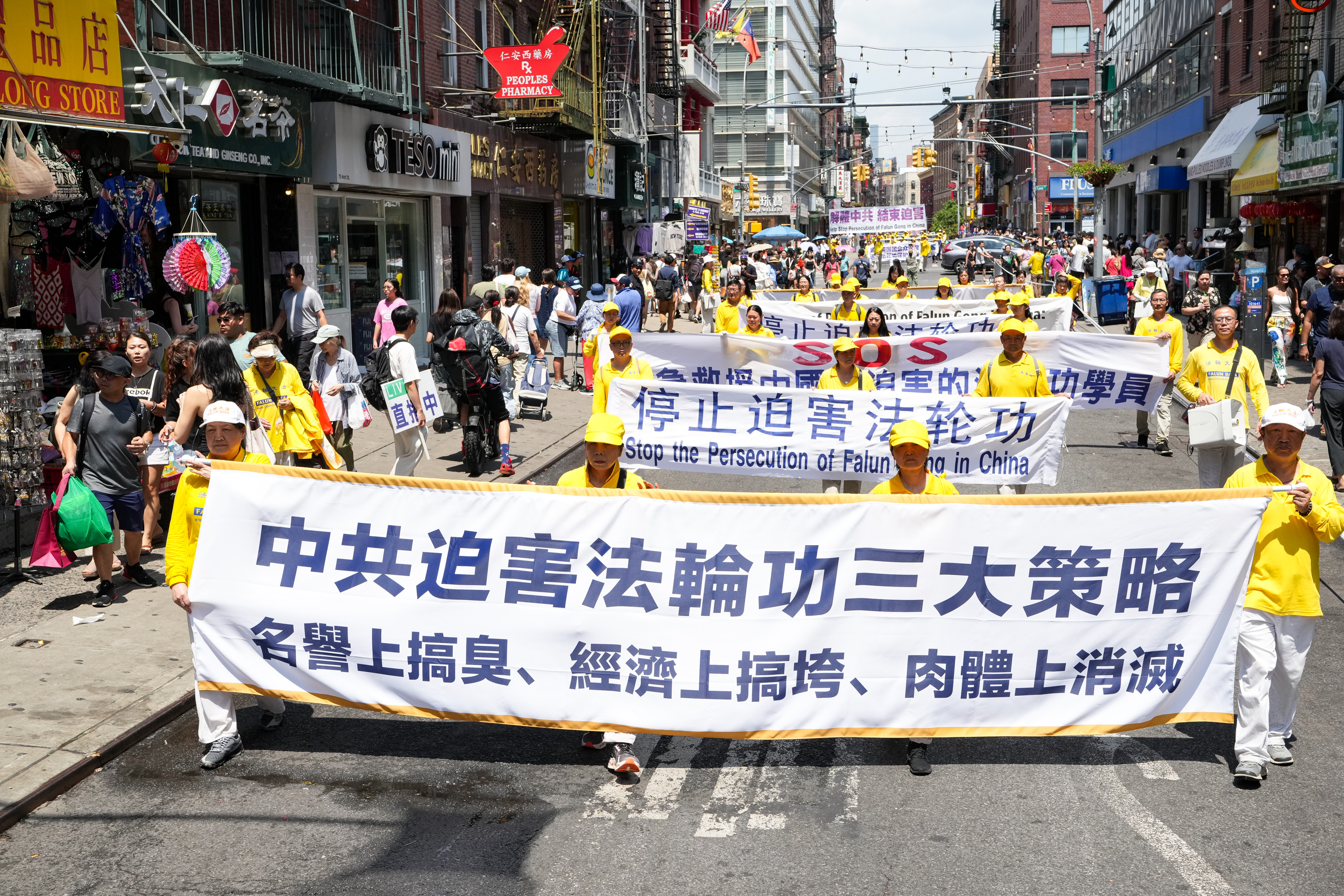 没有仇恨与鼓噪,只有真相与善良。中西男女老少法轮功学员手们中展示的一条条横幅,向世人传播善良与和平的精神力量,庄严肃穆,坚韧不拔。请看更多来自这次纽约曼哈顿的游行图片: