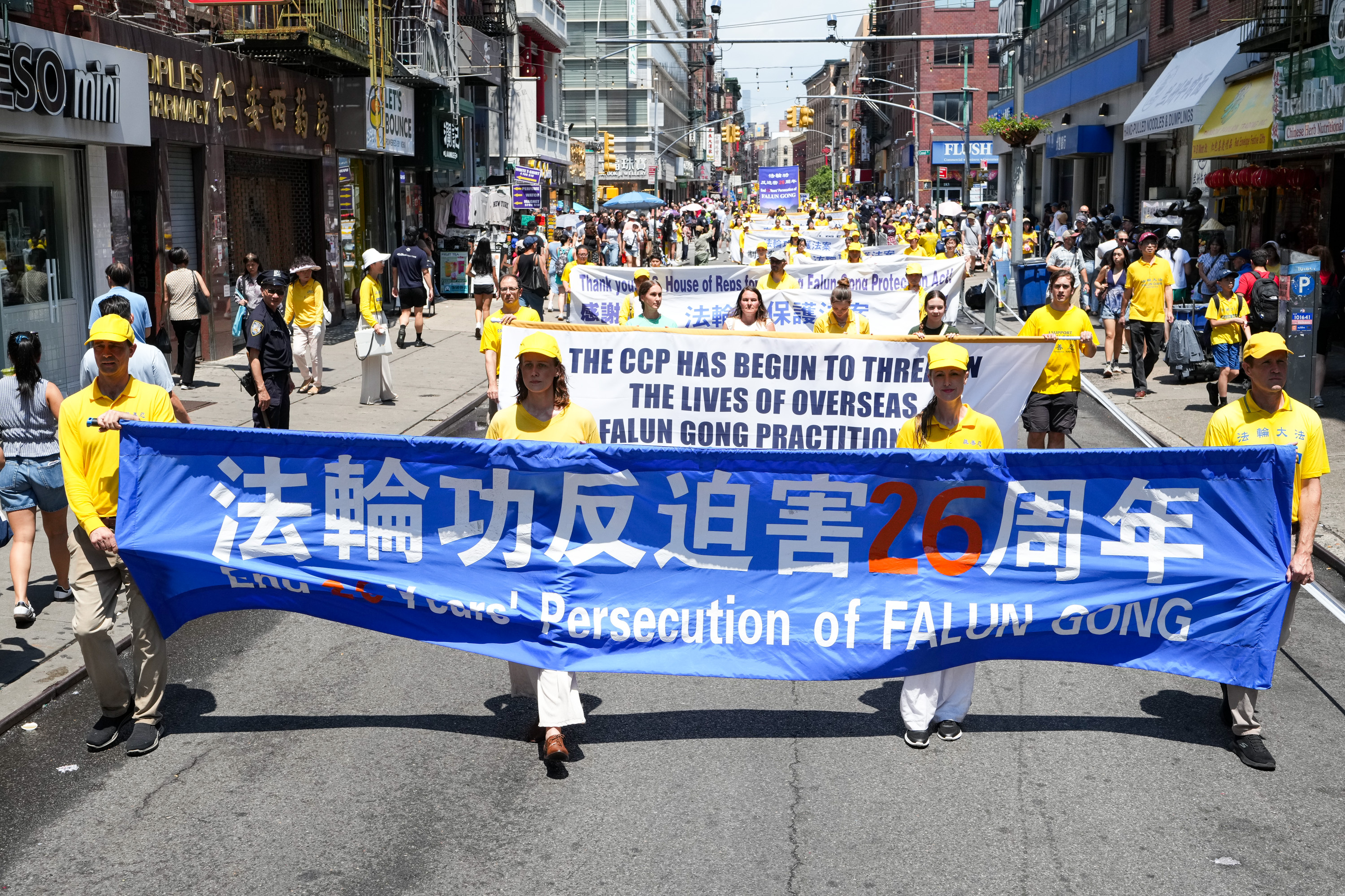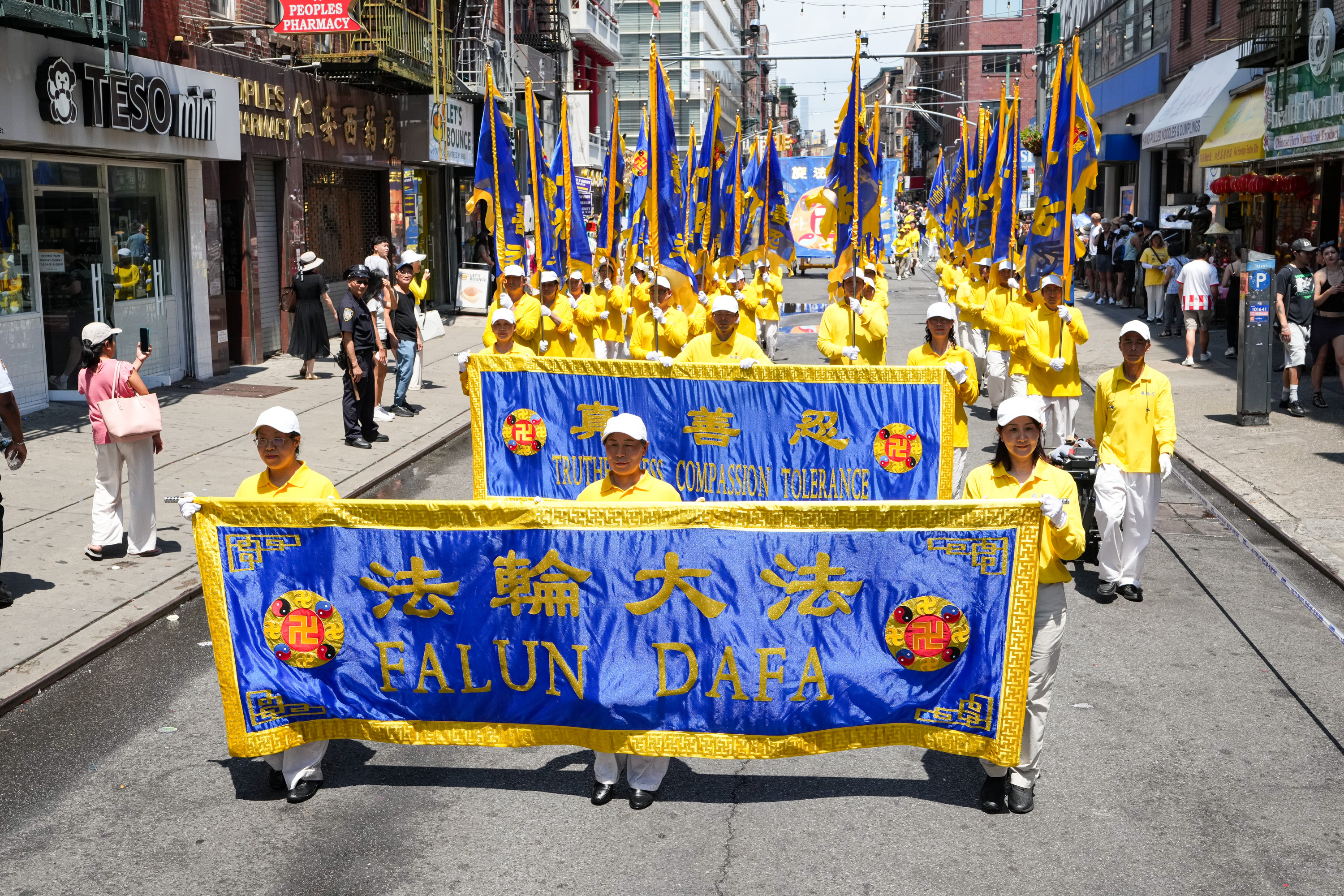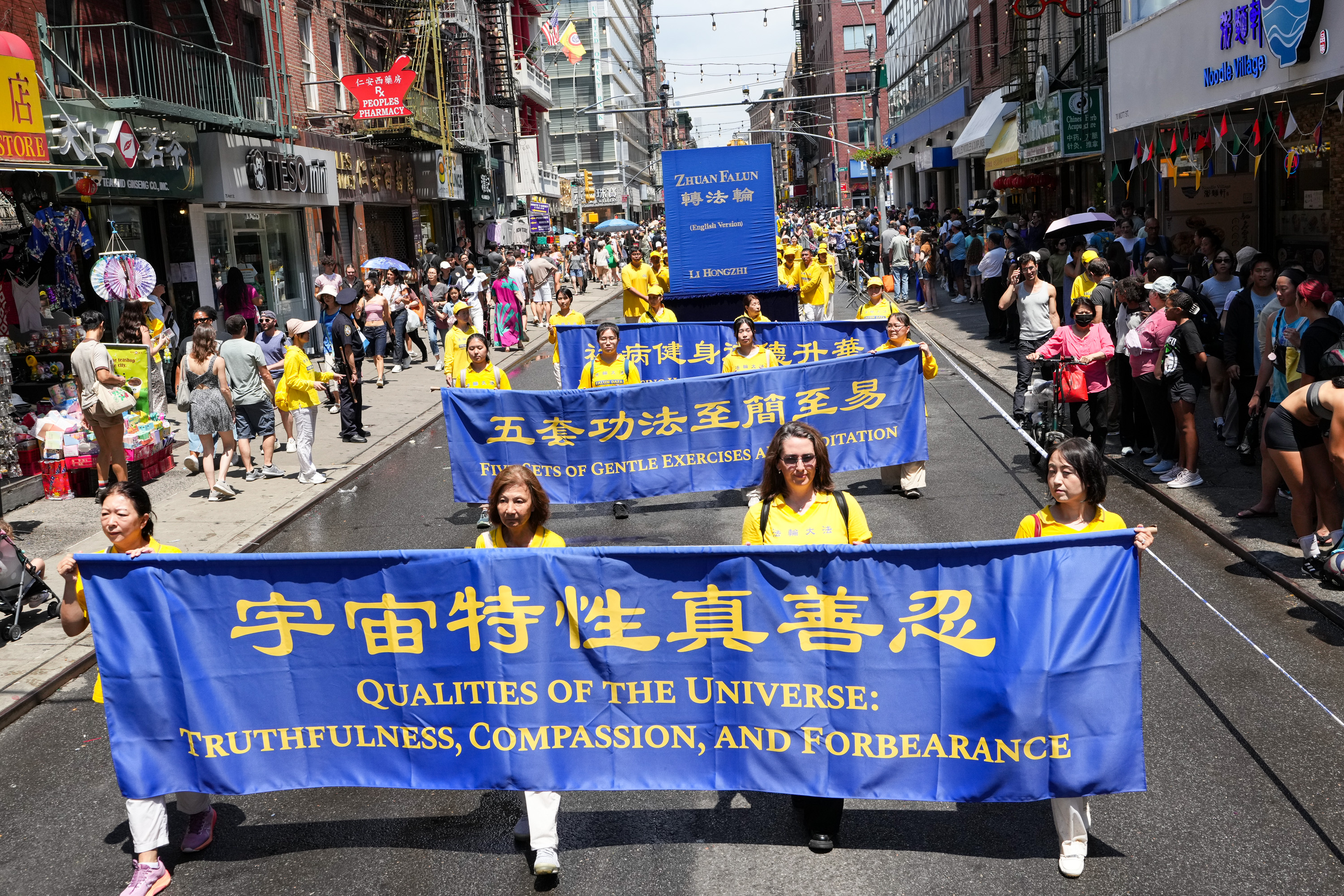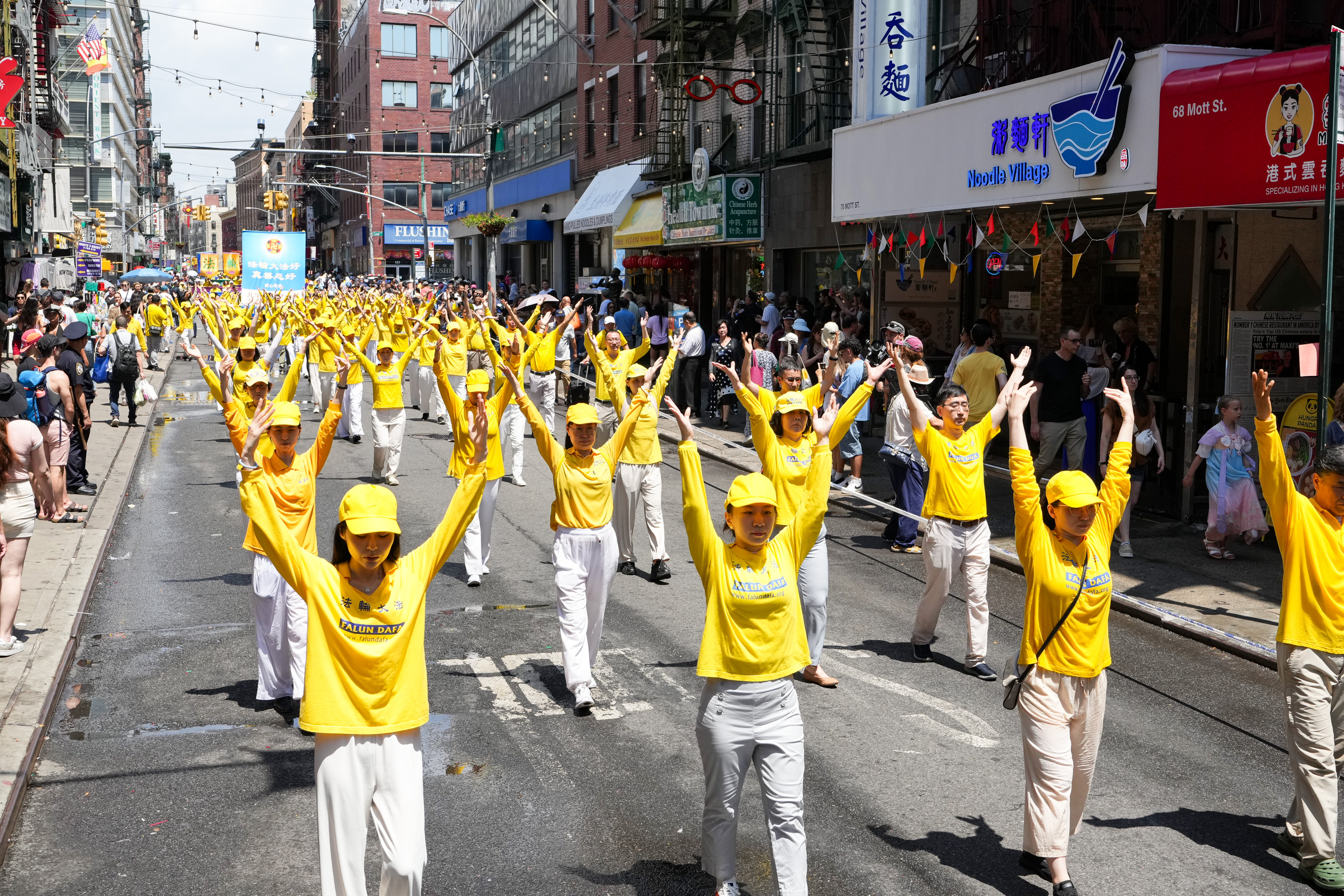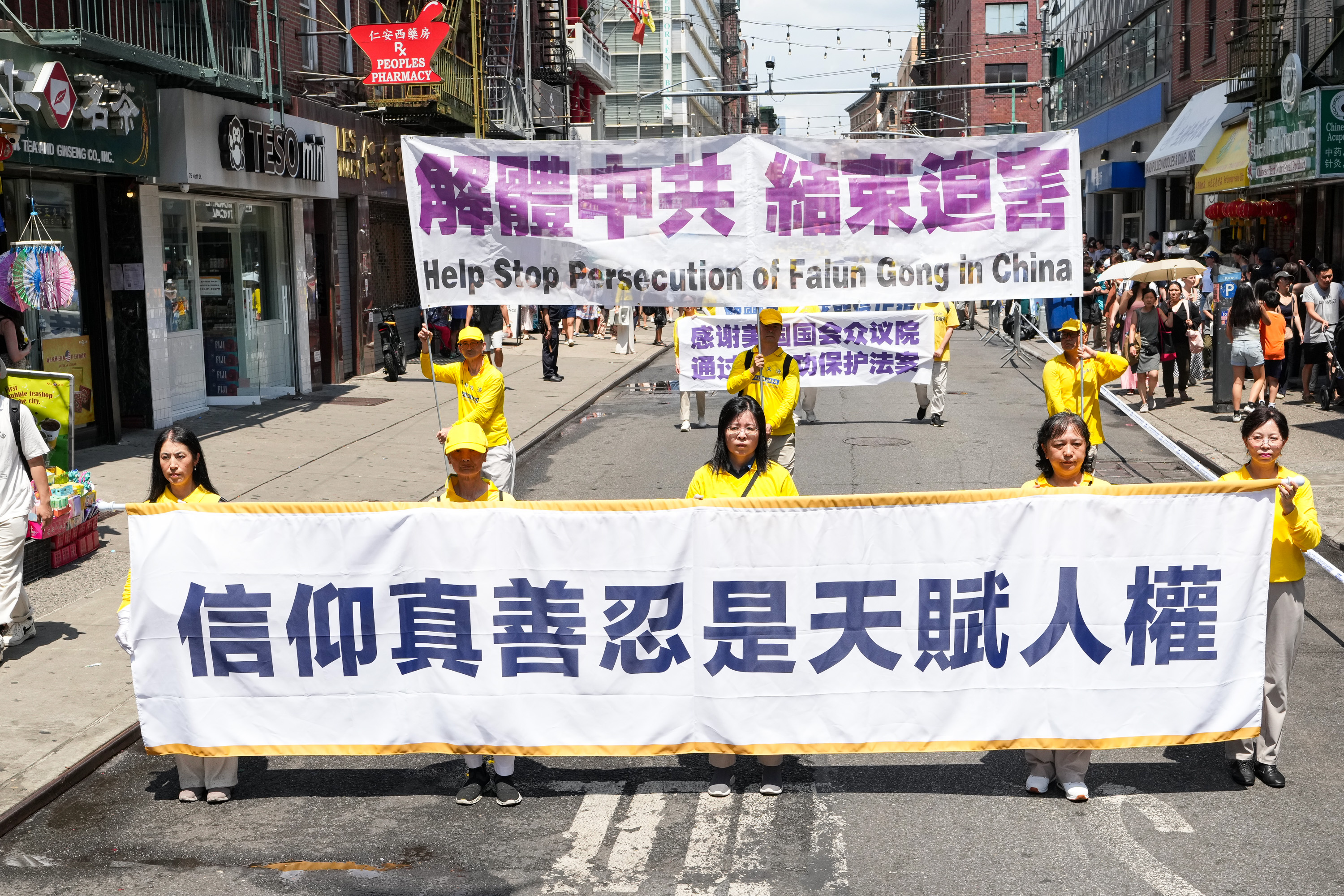 没有仇恨与鼓噪,只有真相与善良。中西男女老少法轮功学员手们中展示的一条条横幅,向世人传播善良与和平的精神力量,庄严肃穆,坚韧不拔。请看更多来自这次纽约曼哈顿的游行图片: