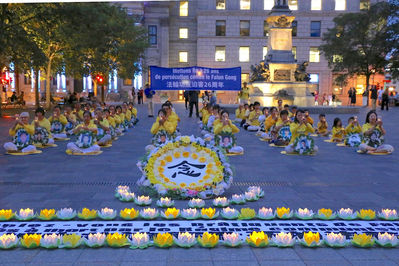 夜幕降临的广场上,盏盏烛光寄托着思念,也在呼唤善良人们对这场残酷迫害的关注,呼吁制止迫害。