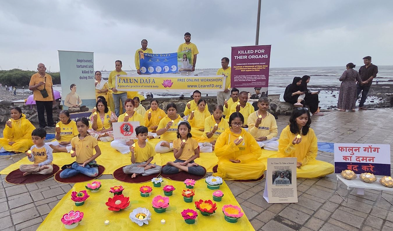 在位于班德拉的卡特路上,来自孟买和浦那的法轮功学员们依次展开“停止迫害法轮功”、“停止杀人强摘器官”等真相横幅,集体炼功之后,他们点起烛光,悼念在迫害中失去生命的同修。