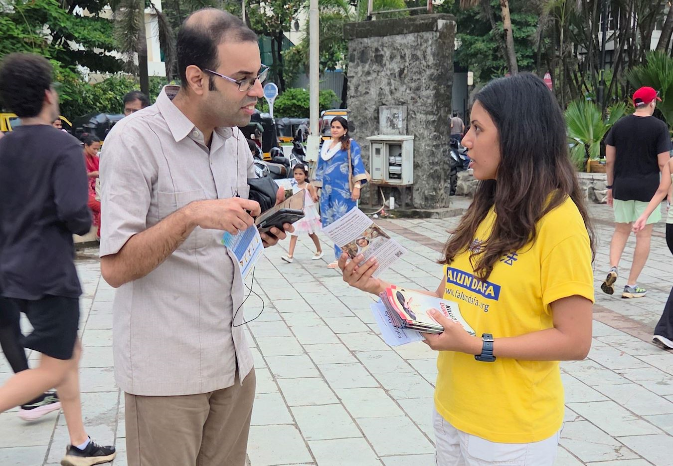 尽管天下起大雨,但庄严肃穆的场面仍吸引了当地居民和游客的关注,当天还适逢孟买马拉松在同一地点举办,因此不少马拉松参与者也前来了解真相。许多人对中国的法轮功学员在高压下仍坚持正信和讲真相的勇气表示钦佩,并表示支持学员们反对中共迫害。