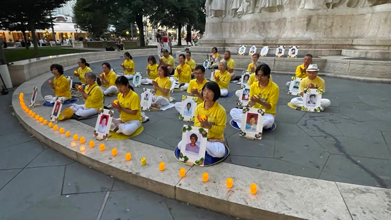 ![]() 图1:二零二五年七月十九日,法轮功学员在匈牙利首都布达佩斯的沃洛什马蒂广场举行和平集会。图为烛光悼念。 |