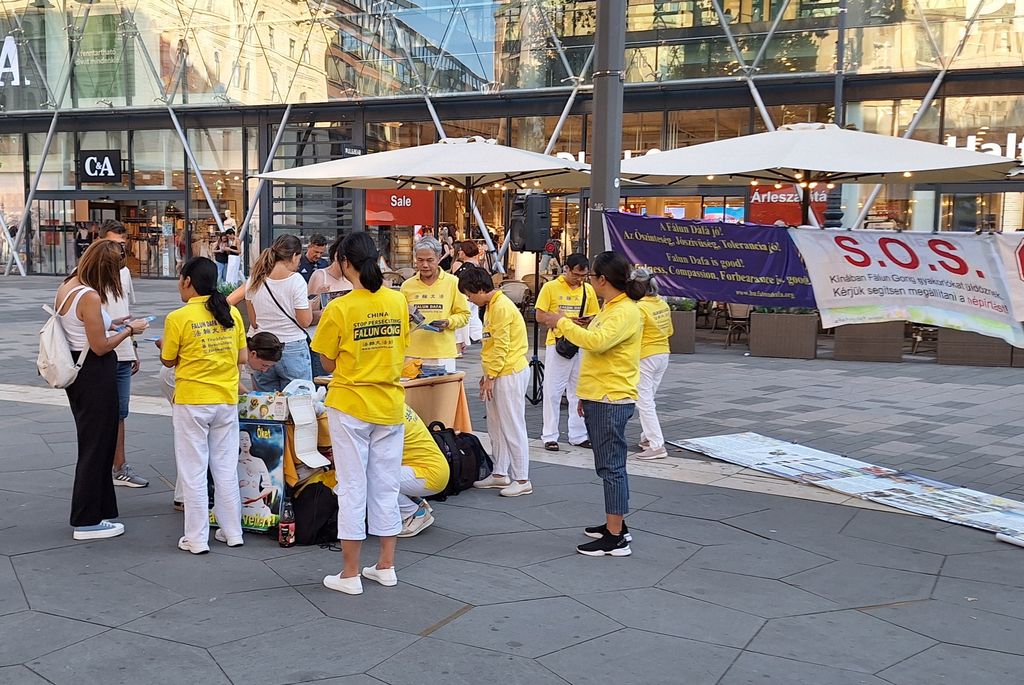 学员还向他们介绍了很多关于什么是法轮功的信息,佐尔坦说:“学员们身上有一种非常善良的气场,令人感到愉悦。我希望他们继续努力,做好这件事。”