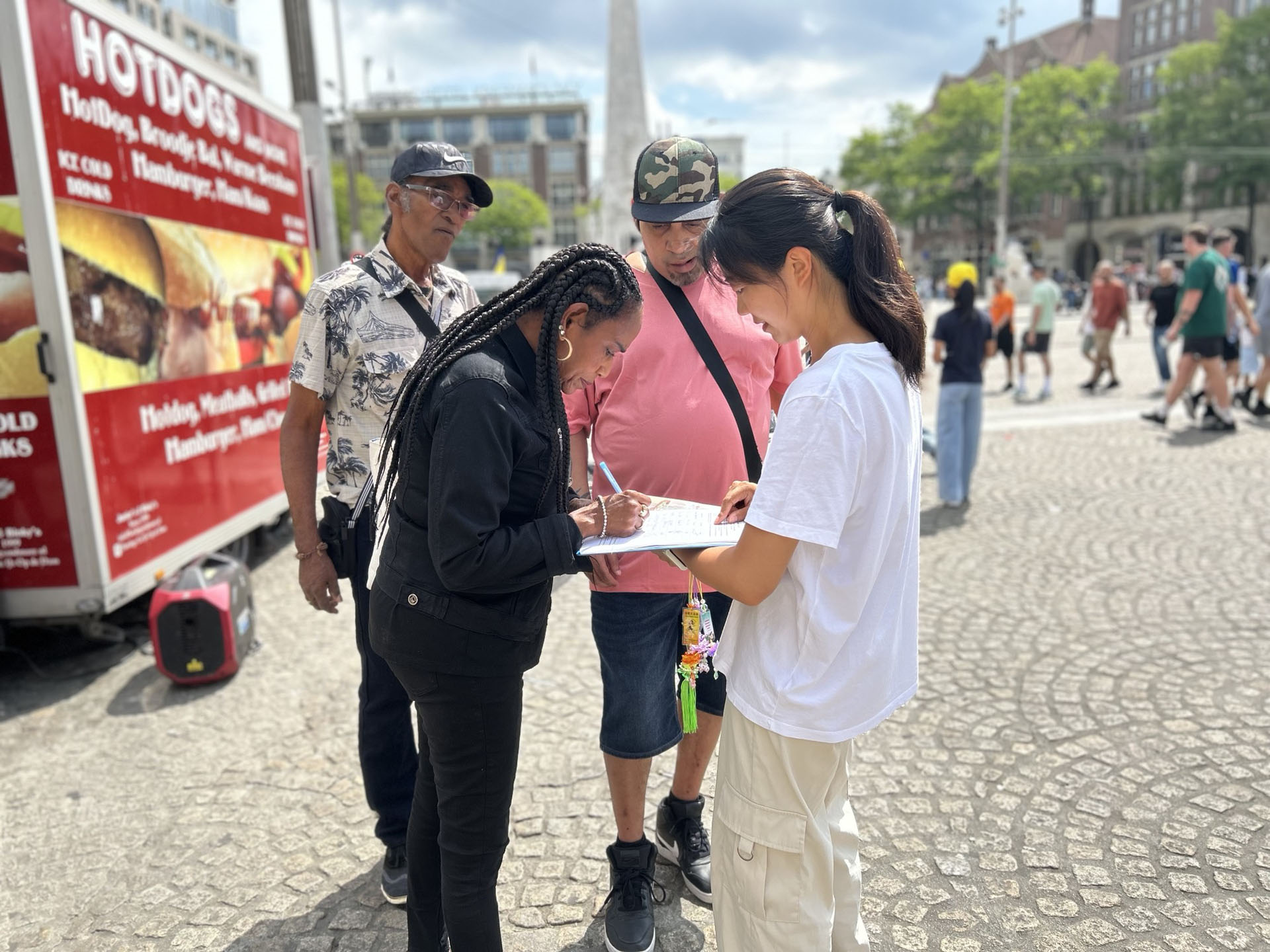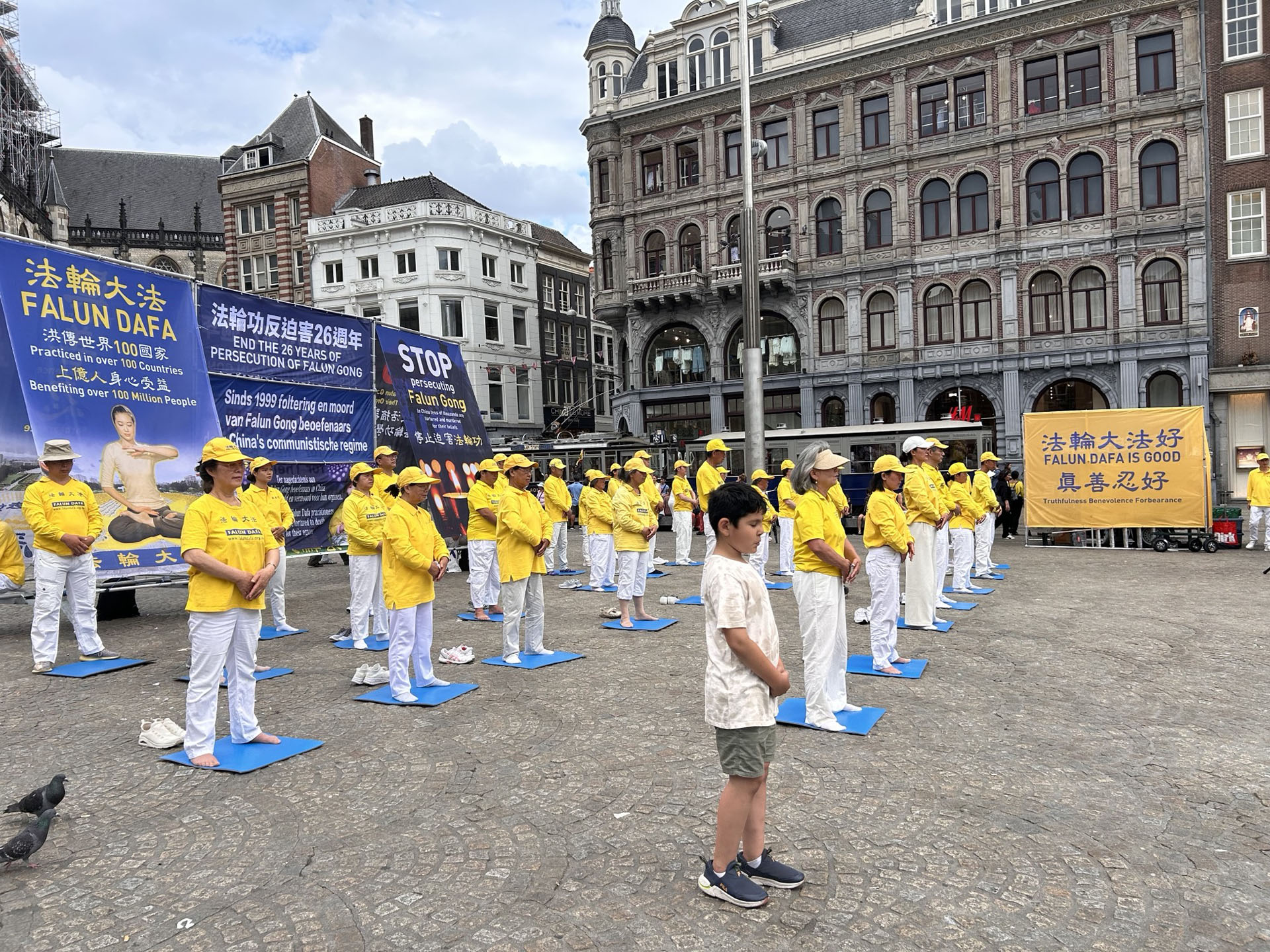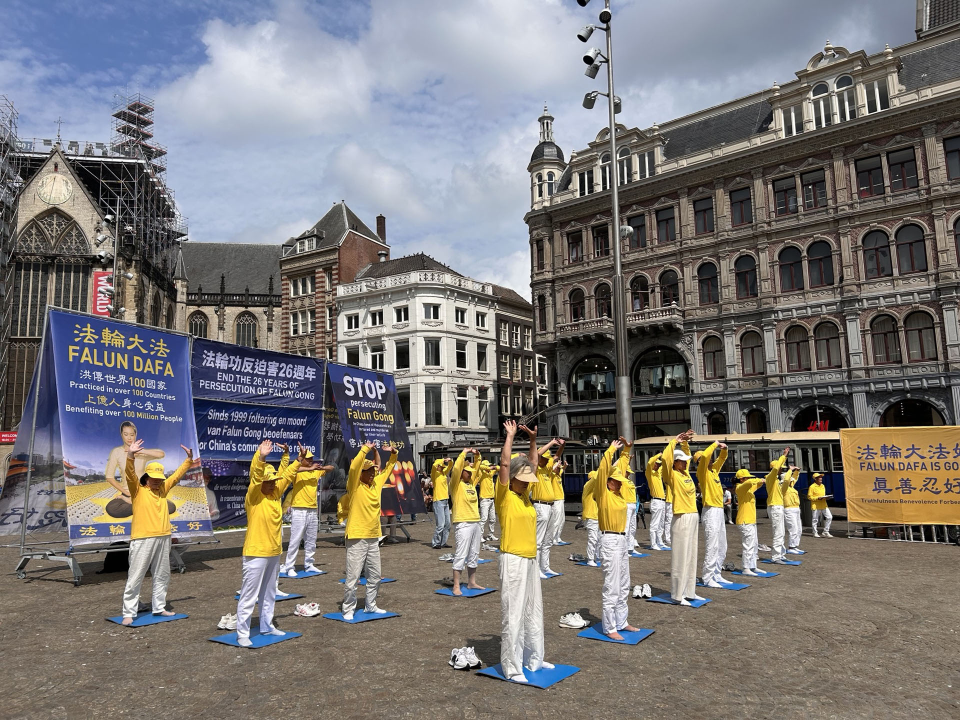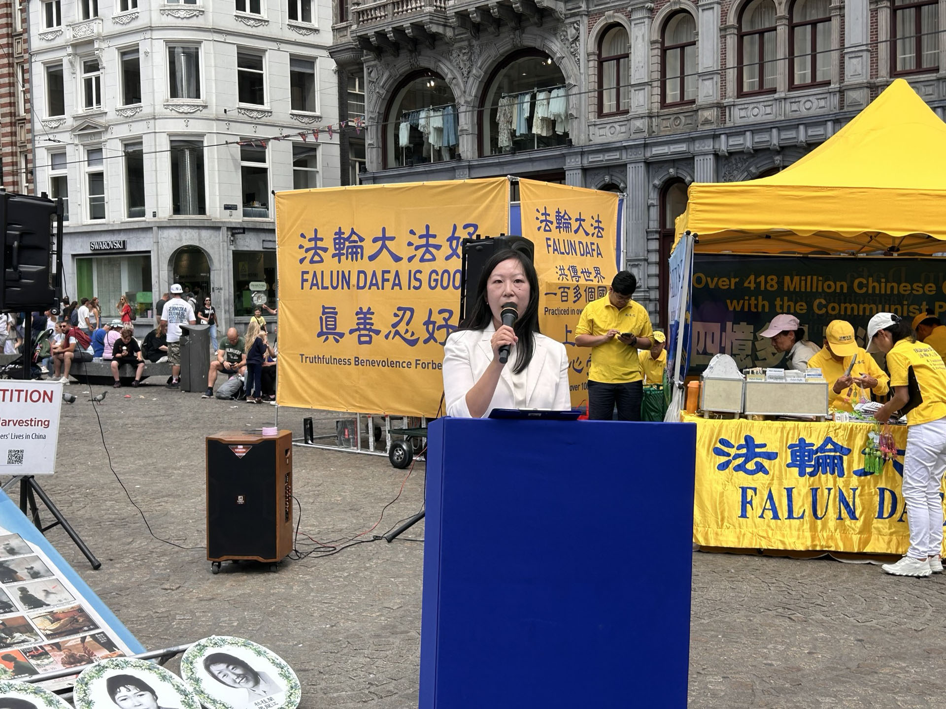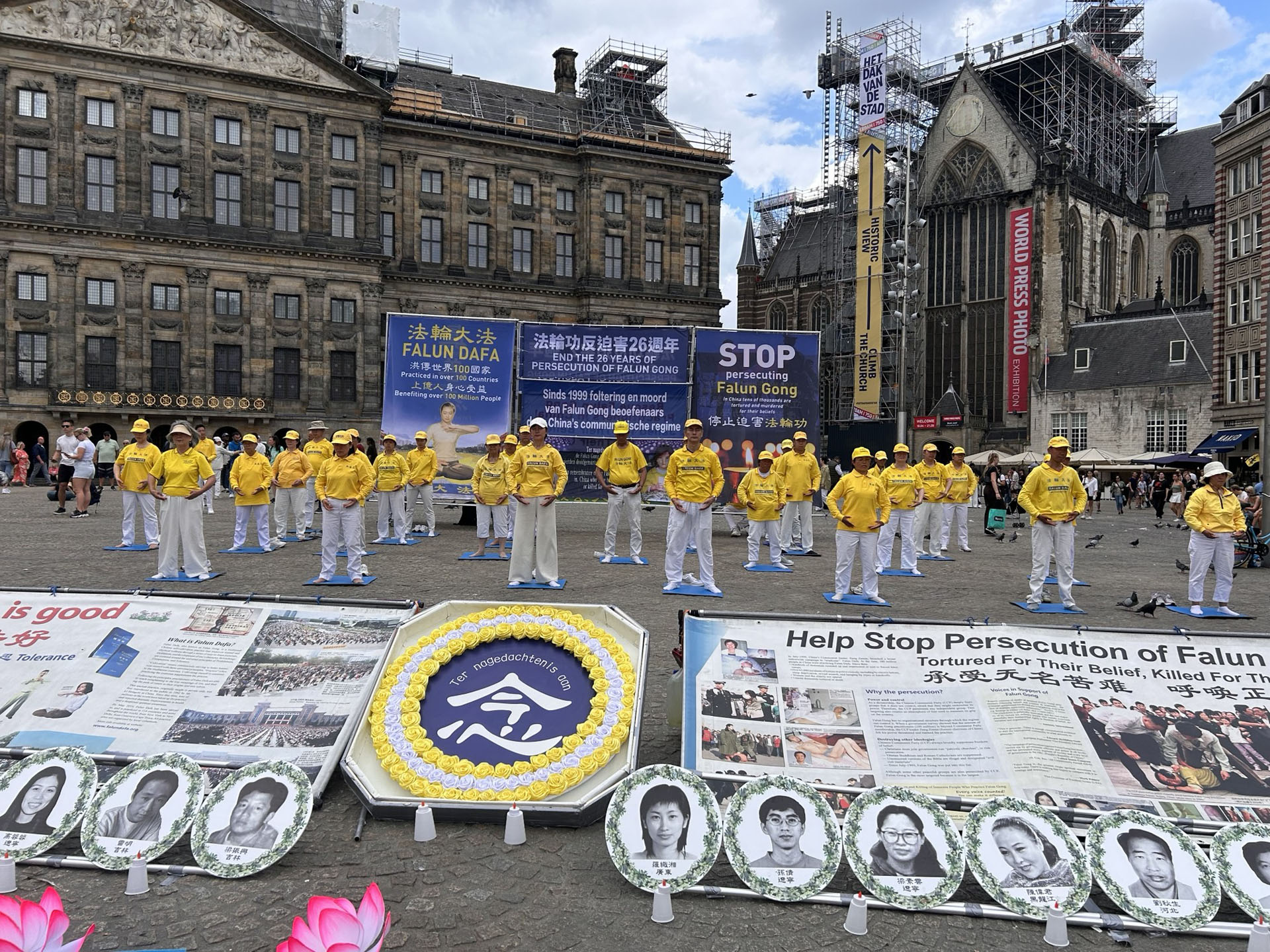 ![]() 图1~4:法轮功学员在阿姆斯特丹的水坝广场举行集体炼功,讲真相,悼念在中共残酷迫害中失去生命的法轮功学员。 |