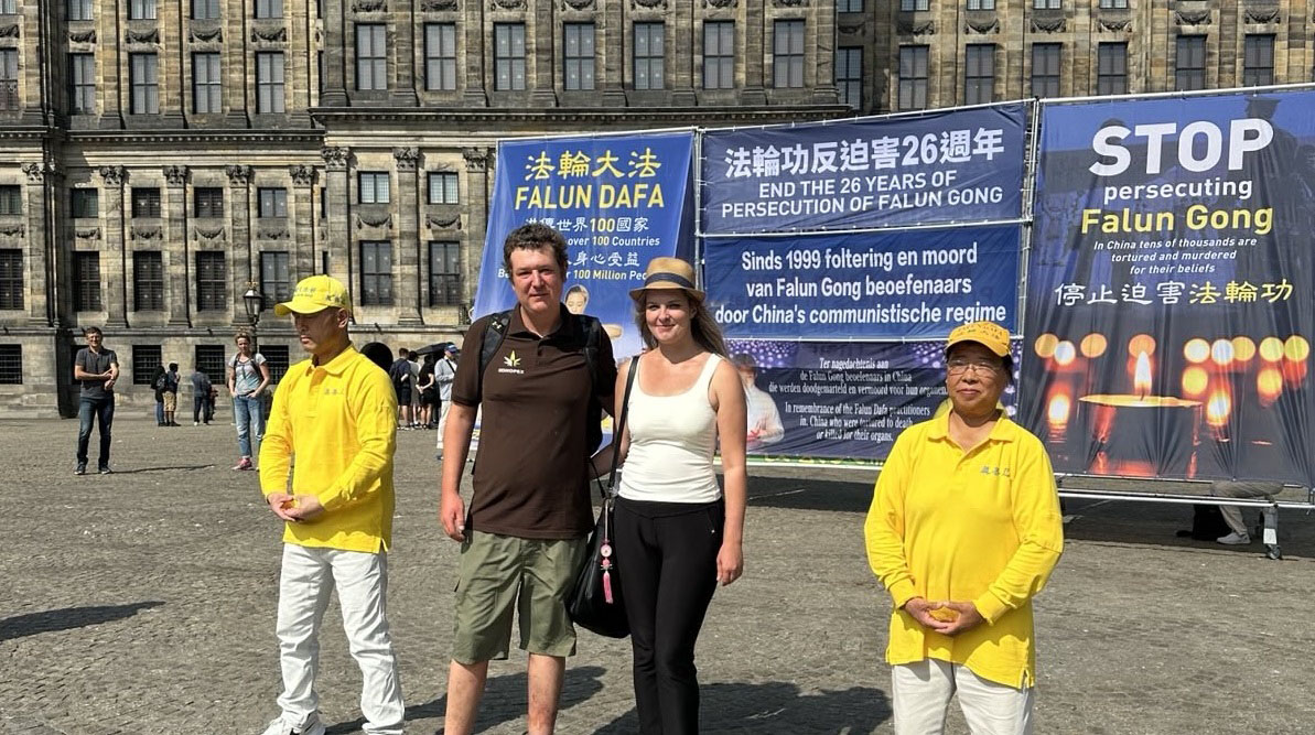 斯蒂芬妮·兰姆(Stephanie Lamb)女士现在居住在阿姆斯特丹,多年前她在英国居住,经常看到在伦敦中使馆外静坐请愿的法轮功学员,他们手中的烛光和日复一日的坚持让她心生感动,后来她开始阅读法轮功的书籍,了解到法轮功是以真善忍为核心原理的精神修炼方式,也对法轮功学员遭受的无端迫害心生同情,她说:“让我感到困惑的是,为什么一个倡导和平、宽容和慈悲的和平组织,会被政府视为威胁。这是我根本无法理解的。 ”她很高兴能在法轮功学员反迫害二十六周年的集会上现身,并“为和平、正义、慈悲和宽容的事业,做出了一些微薄的贡献”,她说:“迫害应该停止。我们必须竭尽全力,确保我们的声音被听到,并为那些无法为自己发声的人发声!”
