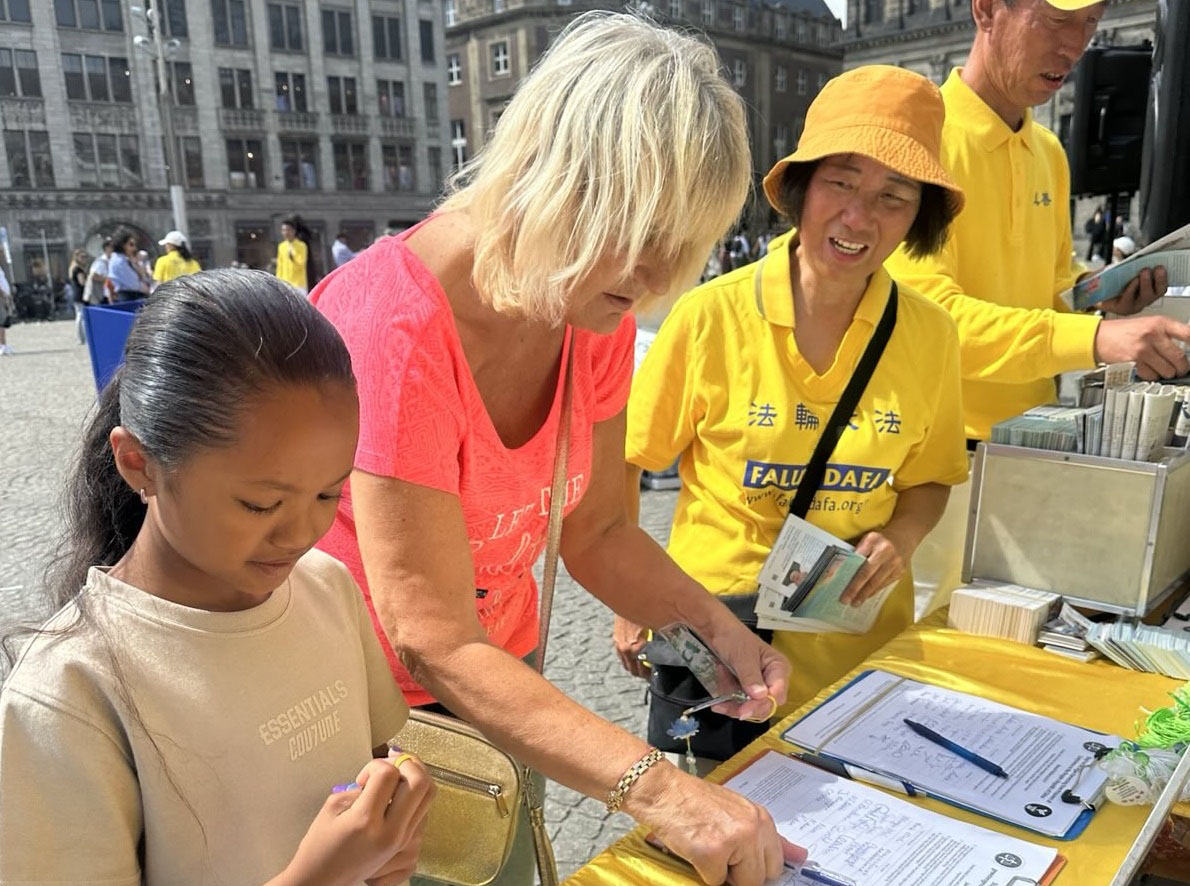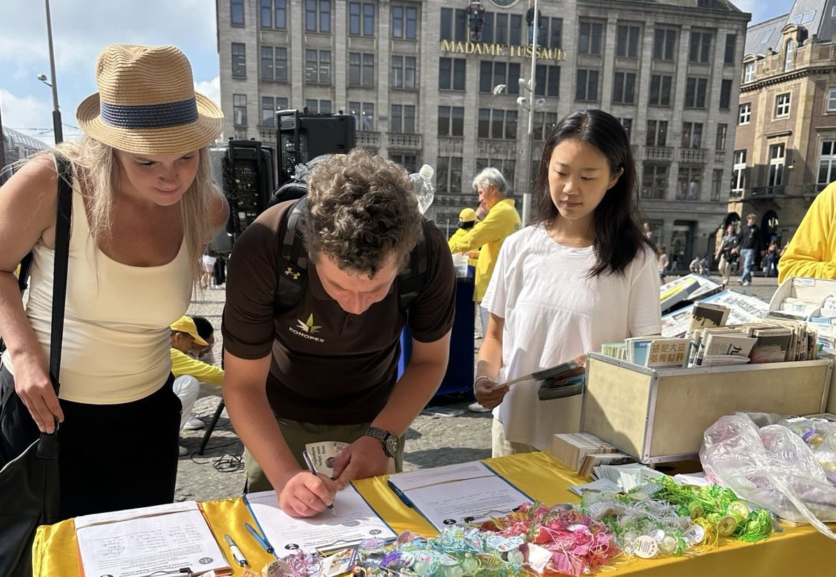 一对瑞典父子也来签名支持法轮功反迫害,父亲说:“我觉得支持中国法轮功学员很有意义,因为我的儿子就是来自中国的,我很高兴,他能帮助他出生的那片土地上的人。”儿子是两岁时被父亲收养的,听到法轮功学员介绍的真相后,他说:“真善忍很好,如果每个人都遵循这三个原理,世界就会更加和平,人们也会更加友善。”“我对中共不太了解,但当我听到这个消息(中共迫害法轮功)时,我不明白他们为什么要这么做。我觉得这真是一个残酷的体制。这确实很糟糕。我不太喜欢它,也不支持它。”