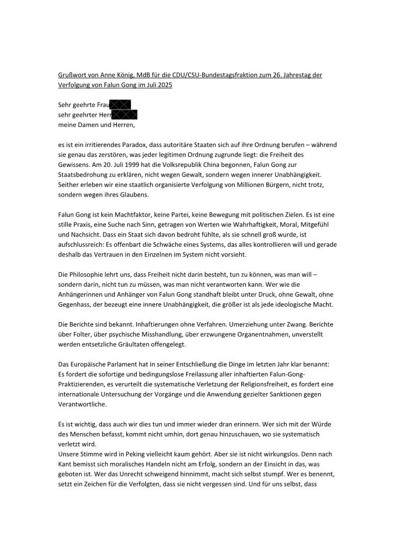 <英文版: https://en.minghui.org/html/articles/2025/7/27/229077.html>法轮功反迫害26年 德国各级政要纷纷声援(一)