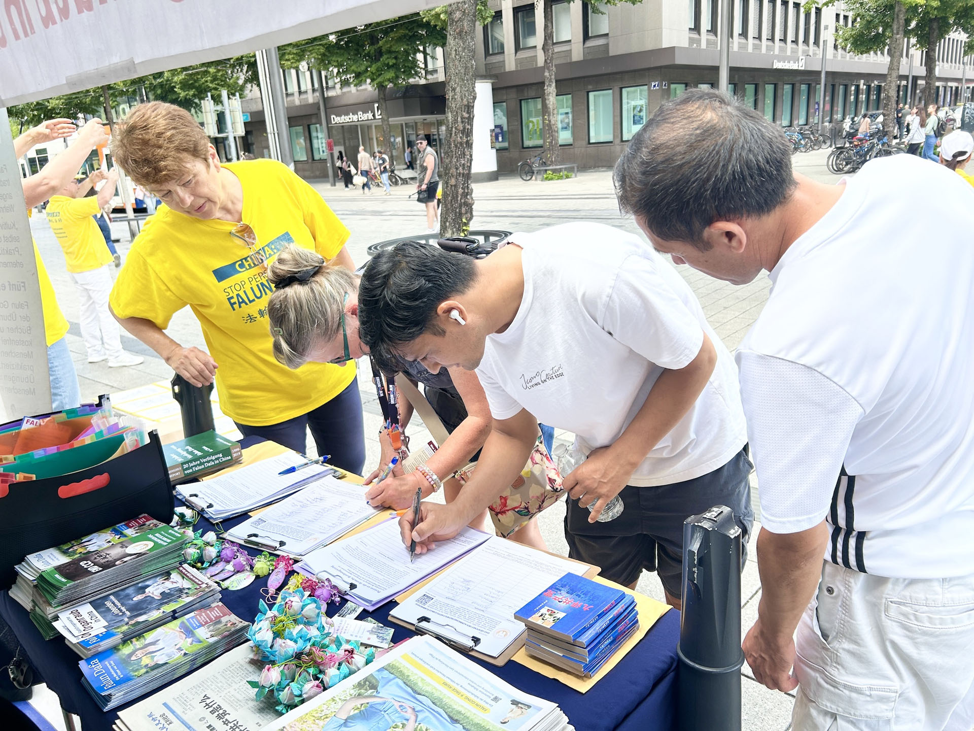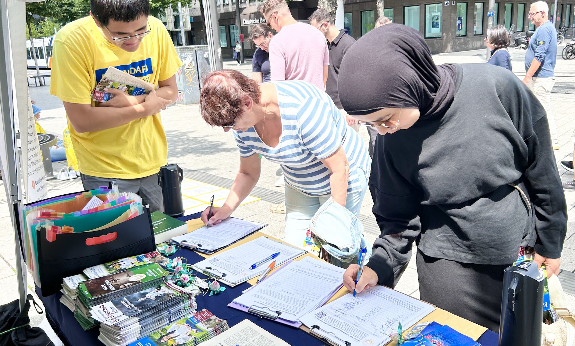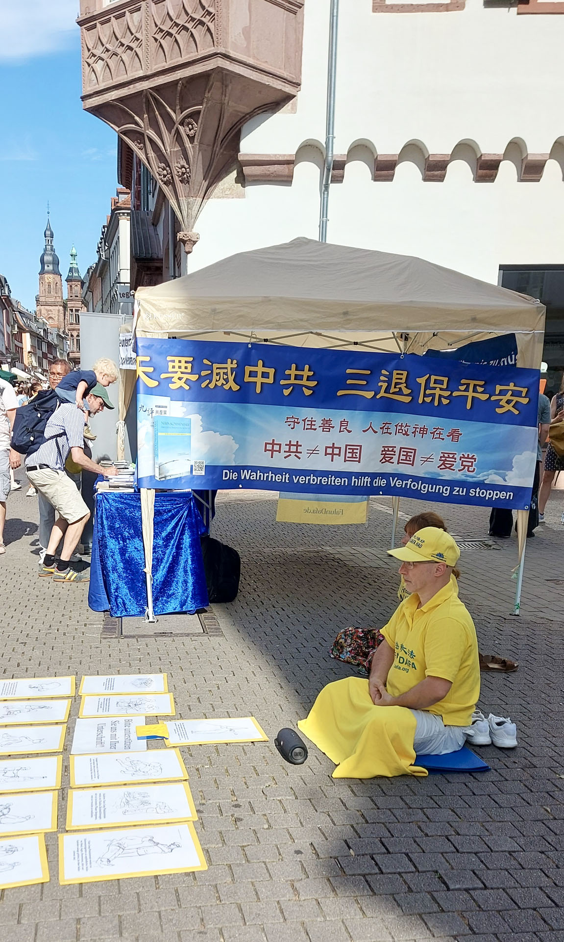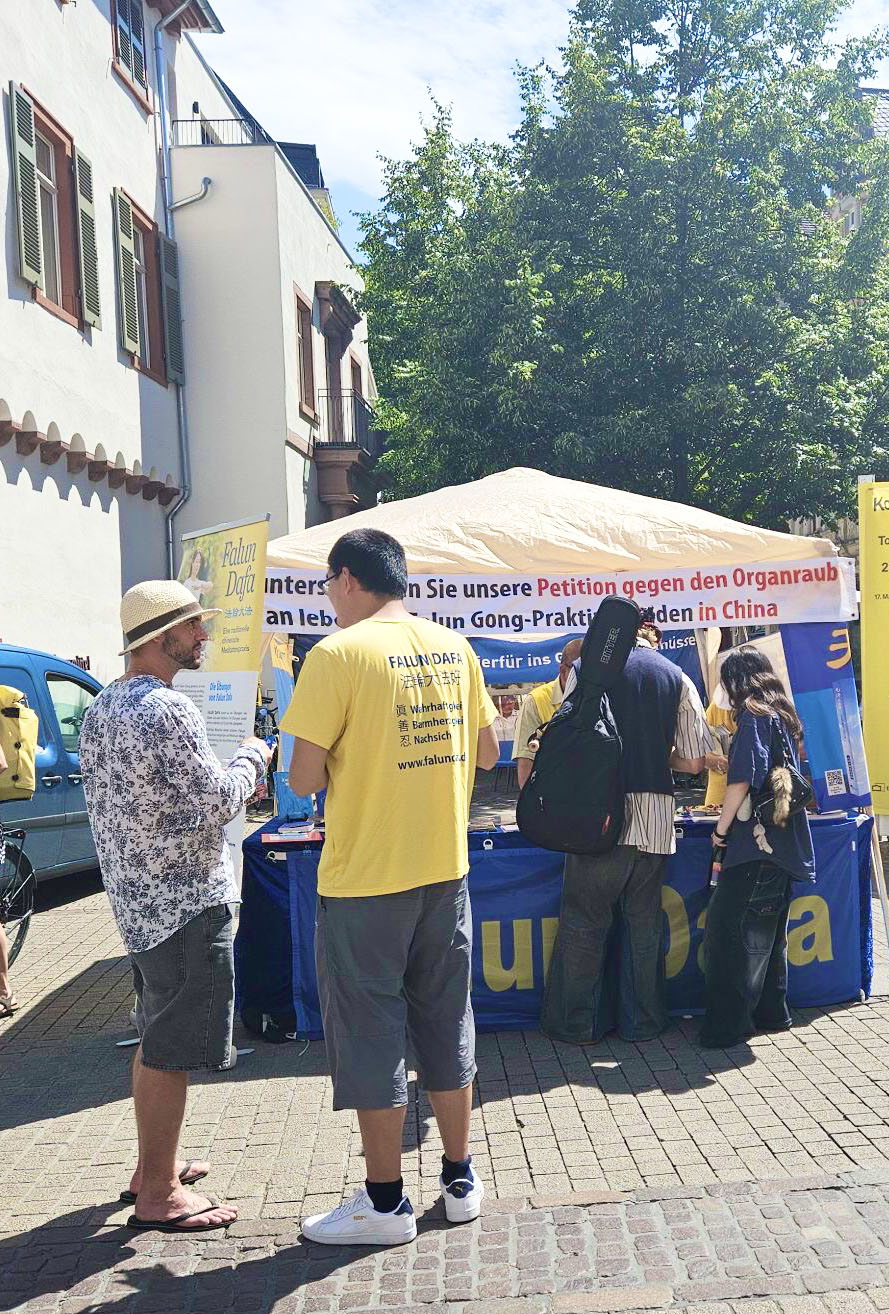 【明慧网二零二五年七月三十一日】二零二五年七月五日、二十六日两个周六,德国莱茵-内卡地区法轮功学员分别在海德堡(Heidelberg)和曼海姆(Mannheim)市中心步行街举办反迫害、弘法活动。学员们向人们讲述中共自一九九九年“七·二零”以来对法轮功信仰团体持续至今已有二十六年的迫害真相以及活摘法轮功学员器官的罪恶。