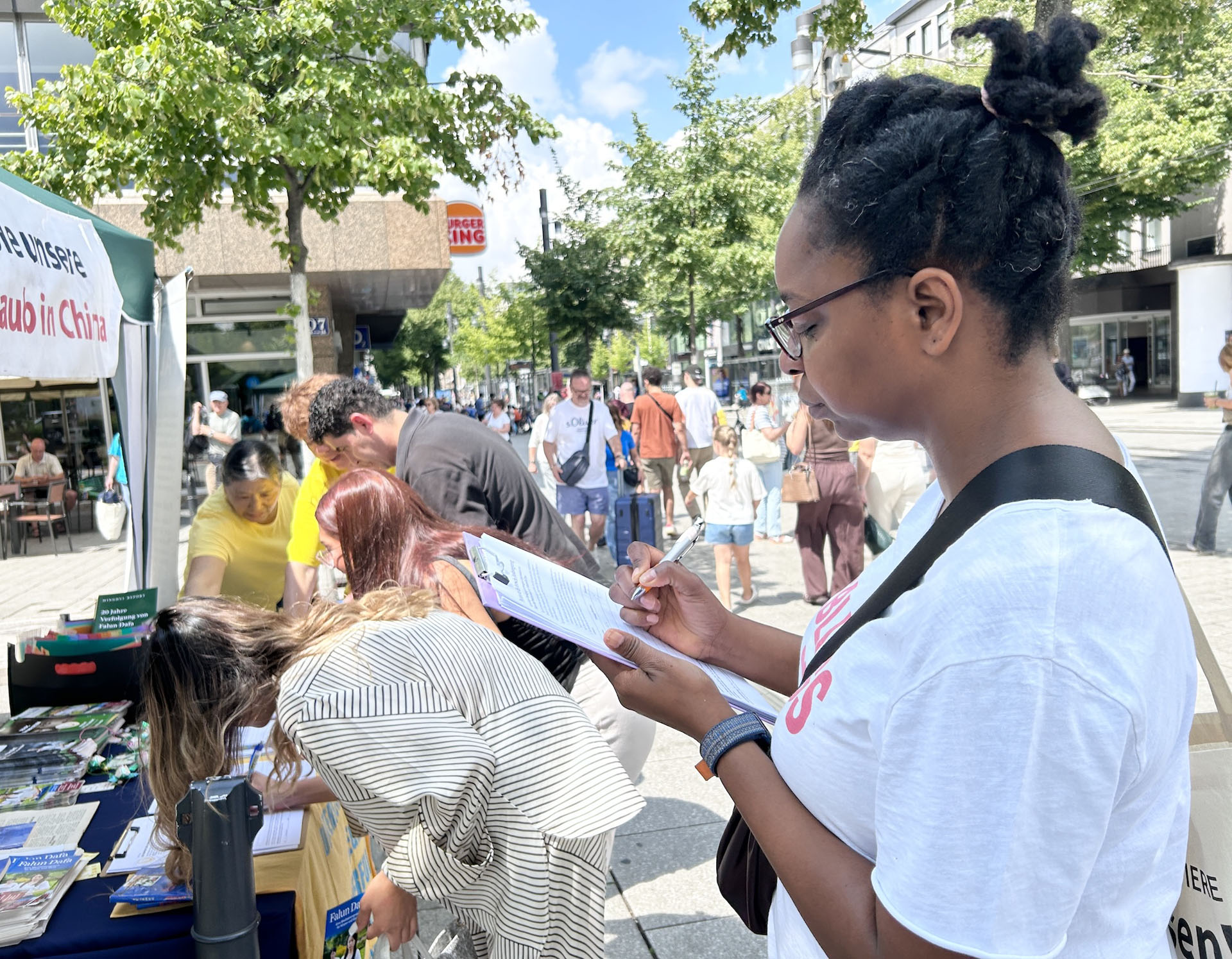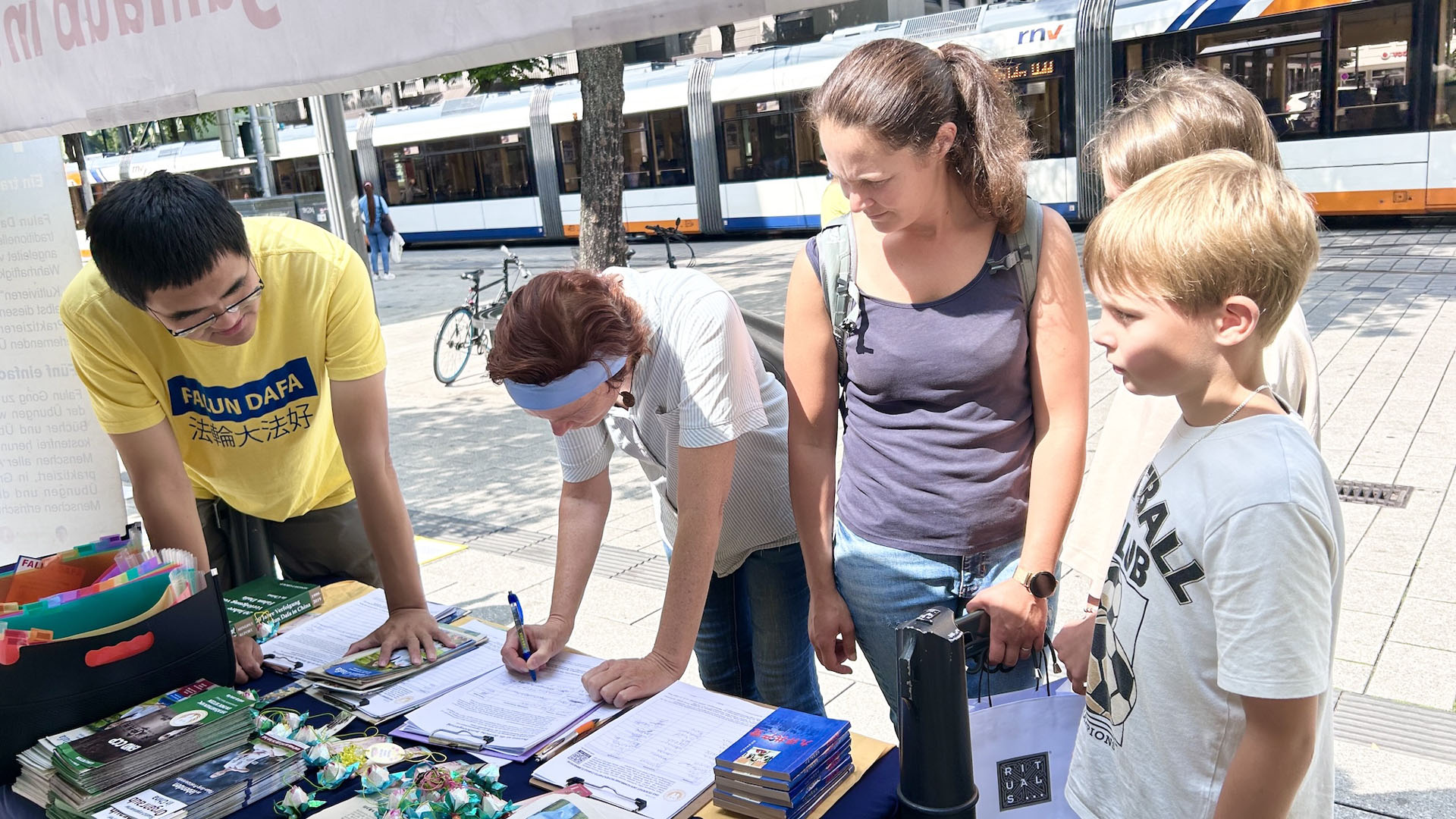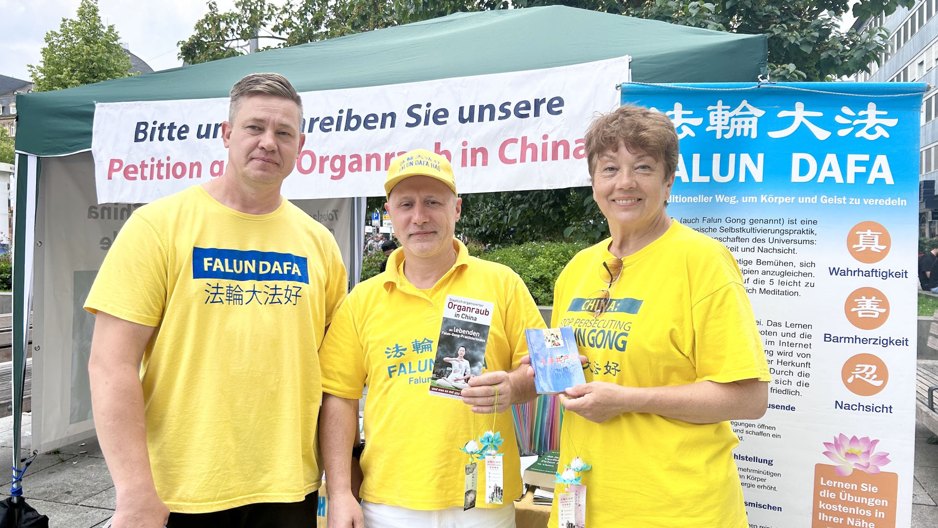 【明慧网二零二五年七月三十一日】二零二五年七月五日、二十六日两个周六,德国莱茵-内卡地区法轮功学员分别在海德堡(Heidelberg)和曼海姆(Mannheim)市中心步行街举办反迫害、弘法活动。学员们向人们讲述中共自一九九九年“七·二零”以来对法轮功信仰团体持续至今已有二十六年的迫害真相以及活摘法轮功学员器官的罪恶。