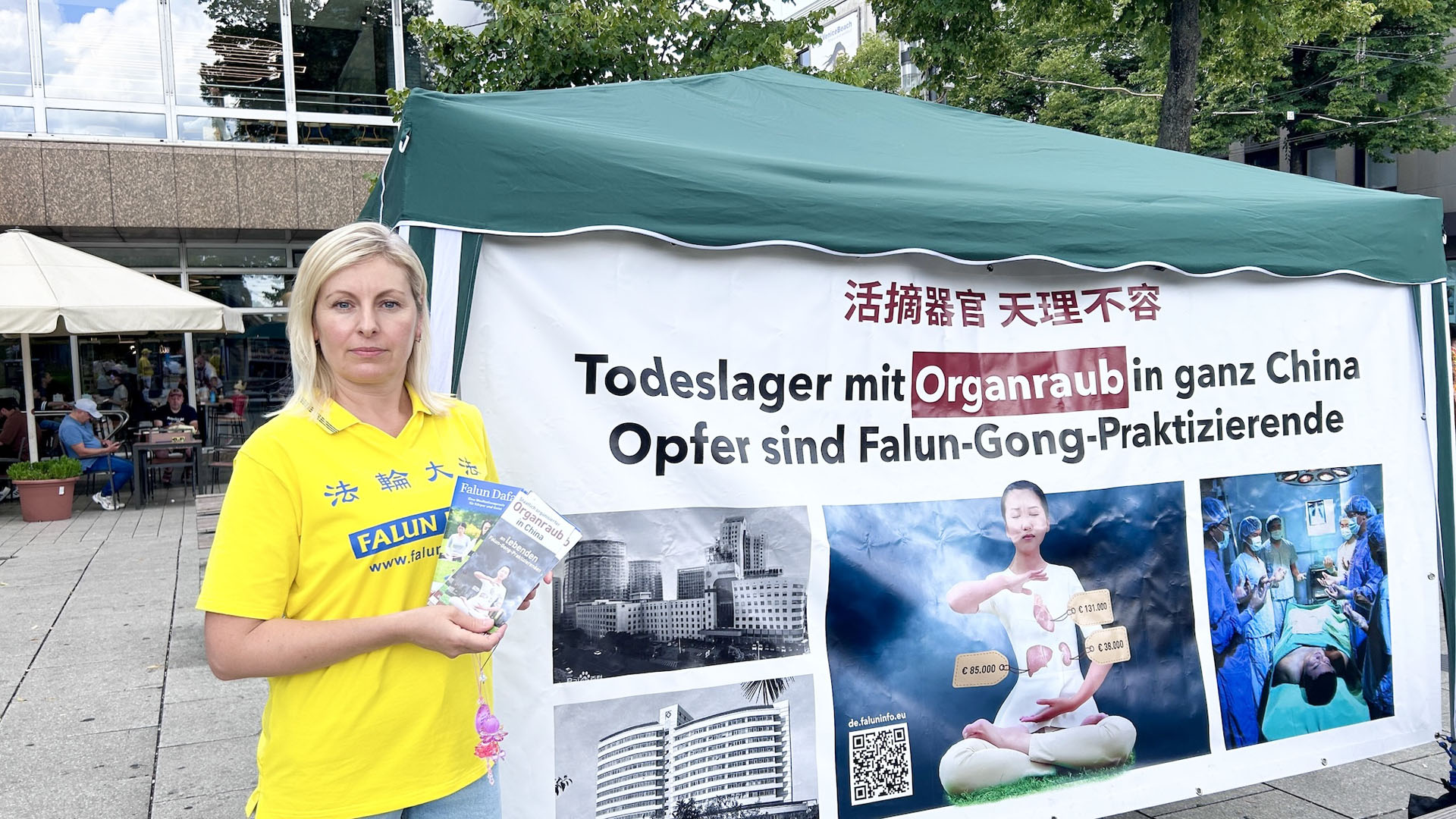 尤莉亚说:“我想告诉更多的人(中共)对法轮功的迫害,并帮助签署反对活摘法轮功学员器官的请愿书。”
