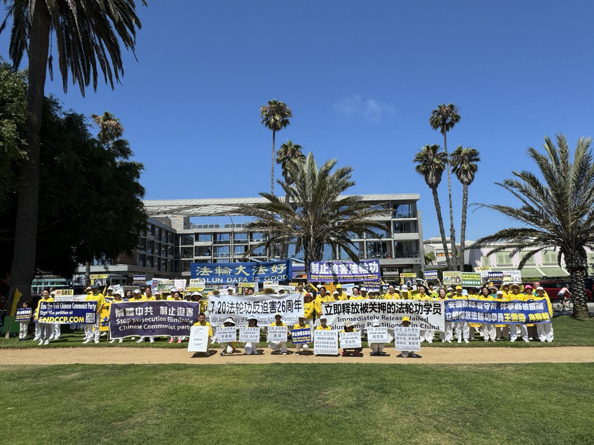 【明慧网二零二五年七月三十一日】今年的七月二十日是法轮功反迫害二十六周年。美国洛杉矶法轮功学员举行了系列活动,悼念被中共迫害致死的法轮功学员,同时向更多人传递真相、呼吁立即停止迫害。