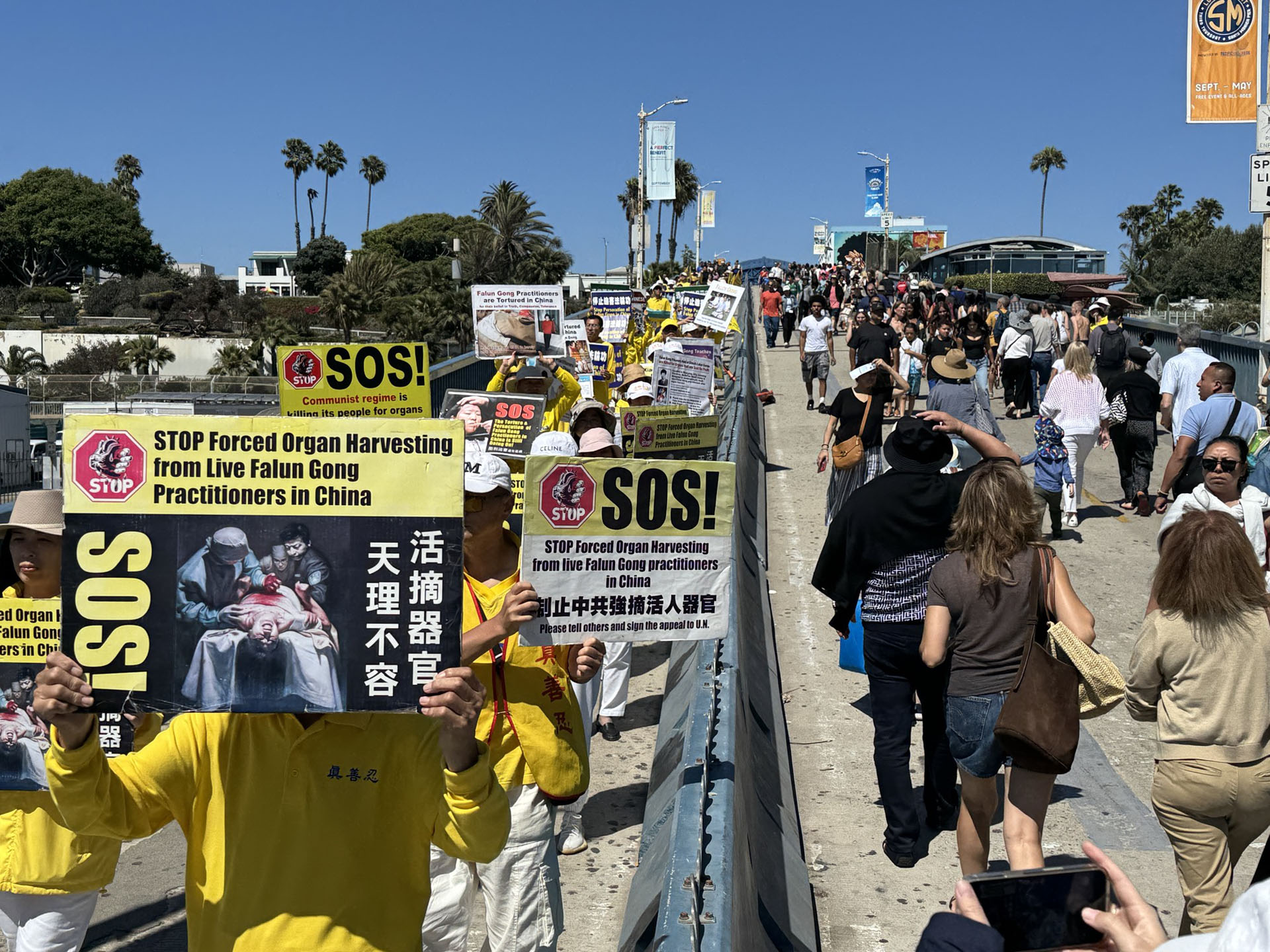 二零二五年七月二十七日(周日),上百名洛杉矶法轮功学员聚集在人潮如织的加州旅游胜地圣莫妮卡码头(Santa Monica Pier),他们手持“活摘器官 天理不容”“停止迫害法轮功”等真相横幅与标语,引起往来游客注目和深思。有人表示:“这样善良的群体不应该遭受如此对待。”