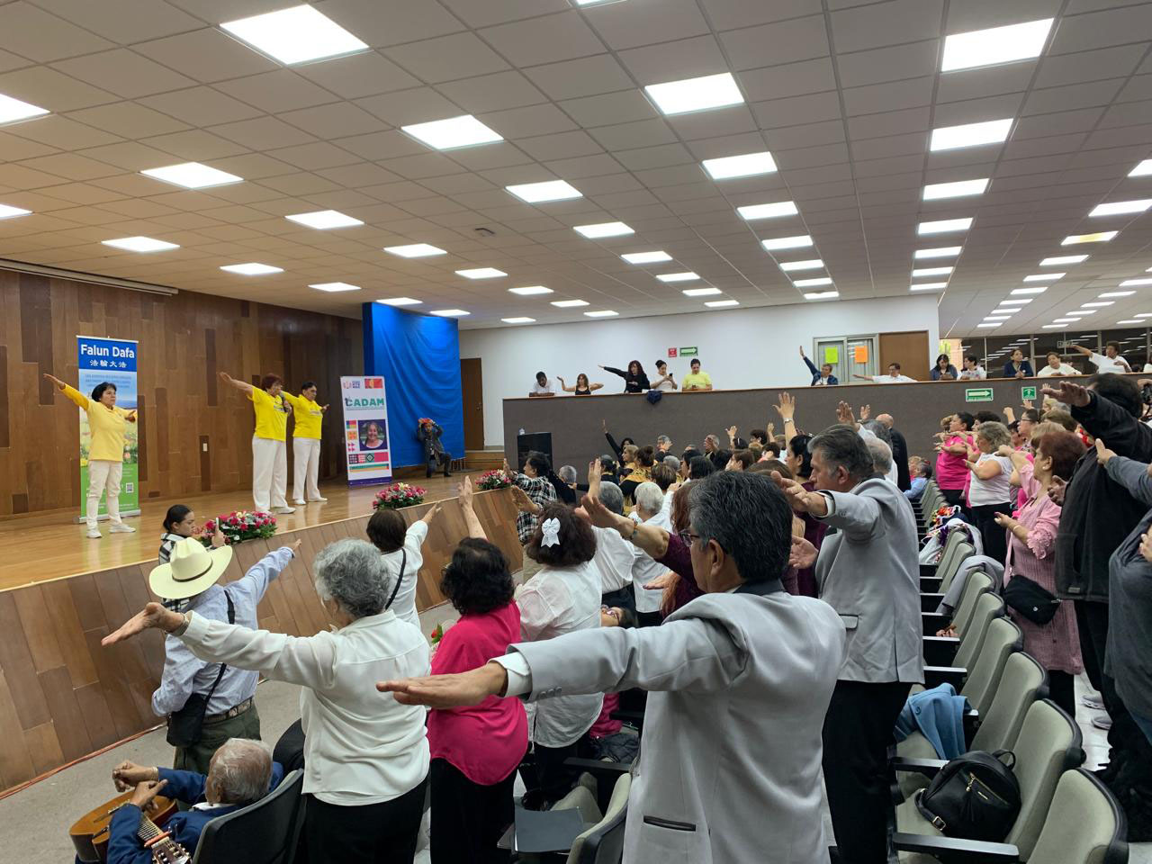 在活动现场,法轮功学员展示五套优美舒展的法轮功功法,希望向更多的人传播这个以真、善、忍为普世价值观、祛病健身、净化心灵的、源于中国的古老佛家功法。经过展位的许多路人,在观看揭露中共迫害法轮功学员罪行的信息,并跟法轮功学员交谈,了解事实真相后,纷纷伸出援手,签名声援法轮功学员的反迫害活动,同时谴责中共对人权的侵犯和践踏。