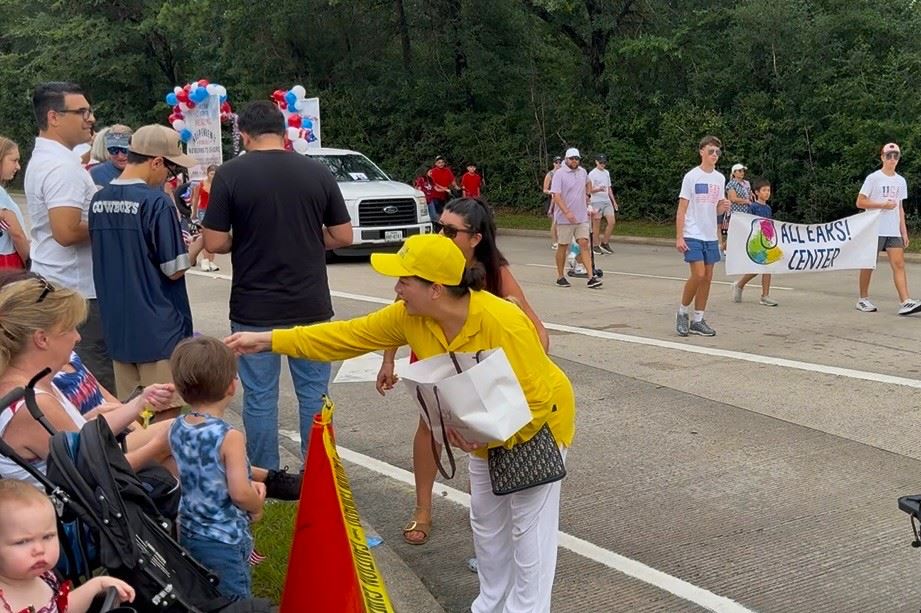 【明慧网二零二五年七月六日】二零二五年七月四日上午,来自休斯顿、大学城、奥斯汀和圣安东尼奥的部分美南法轮功学员受邀参加了在蒙哥马利县伍德兰(The Woodlands)举办的独立日游行,受到沿途观众的热情欢迎,“我们需要真、善、忍!欢迎你们参加独立日游行,你们是非常好的团体!”