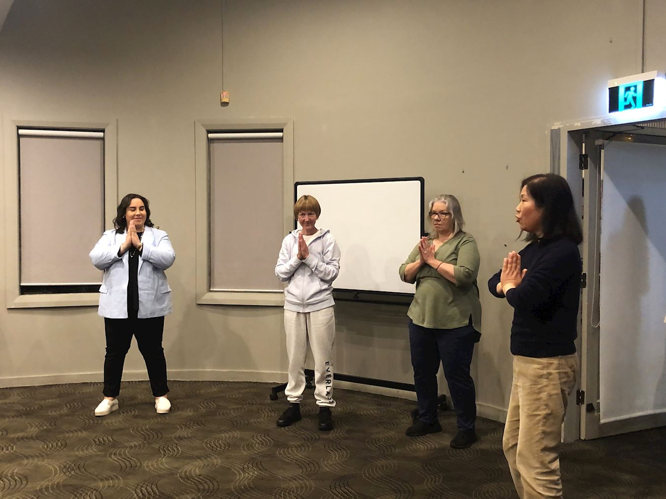 通过event brite软件报名参加的是一位印度女士,她觉得这种活动方式很好,就来了。学炼了五套功法之后,她表示感觉良好,并拿着学员准备好的当地炼功点资料,表示也想参加当地每天的晨炼。