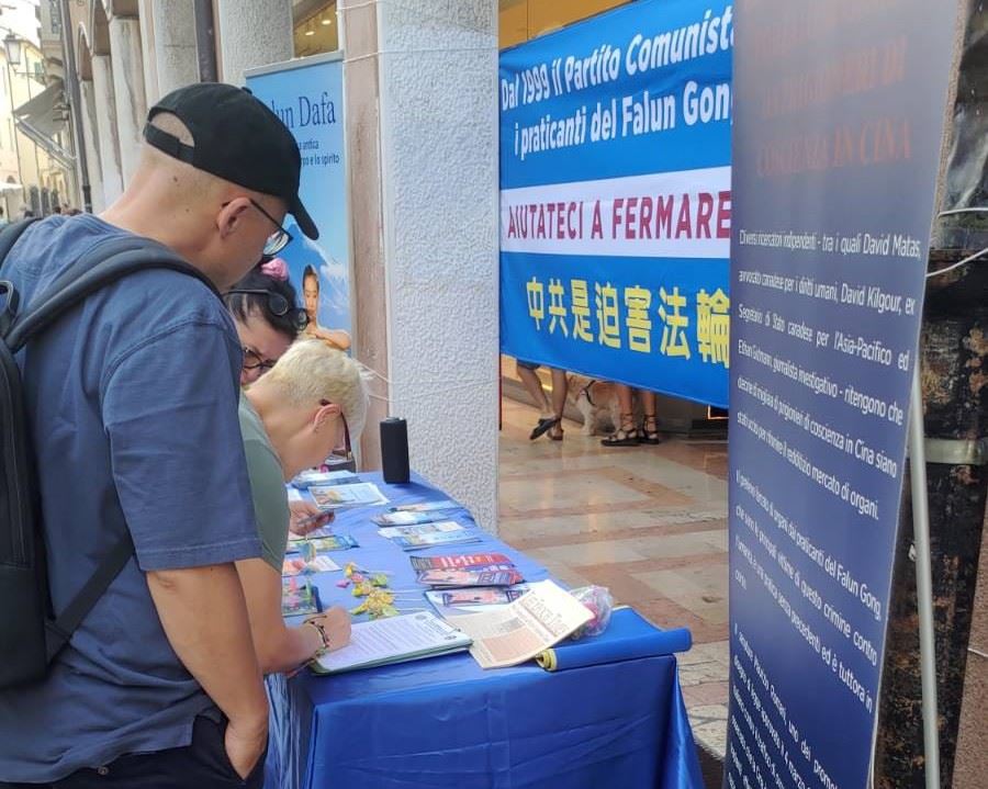 七月十九日及二十六日两个周末,时值法轮功学员和平反迫害二十六年之际,来自意大利东北部地区的法轮功学员分别在帕多瓦Padova和特雷维索Treviso市中心,举办反迫害活动,向公众揭示这场至今仍在持续的对法轮功学员实施的冷酷“群体灭绝”行径。